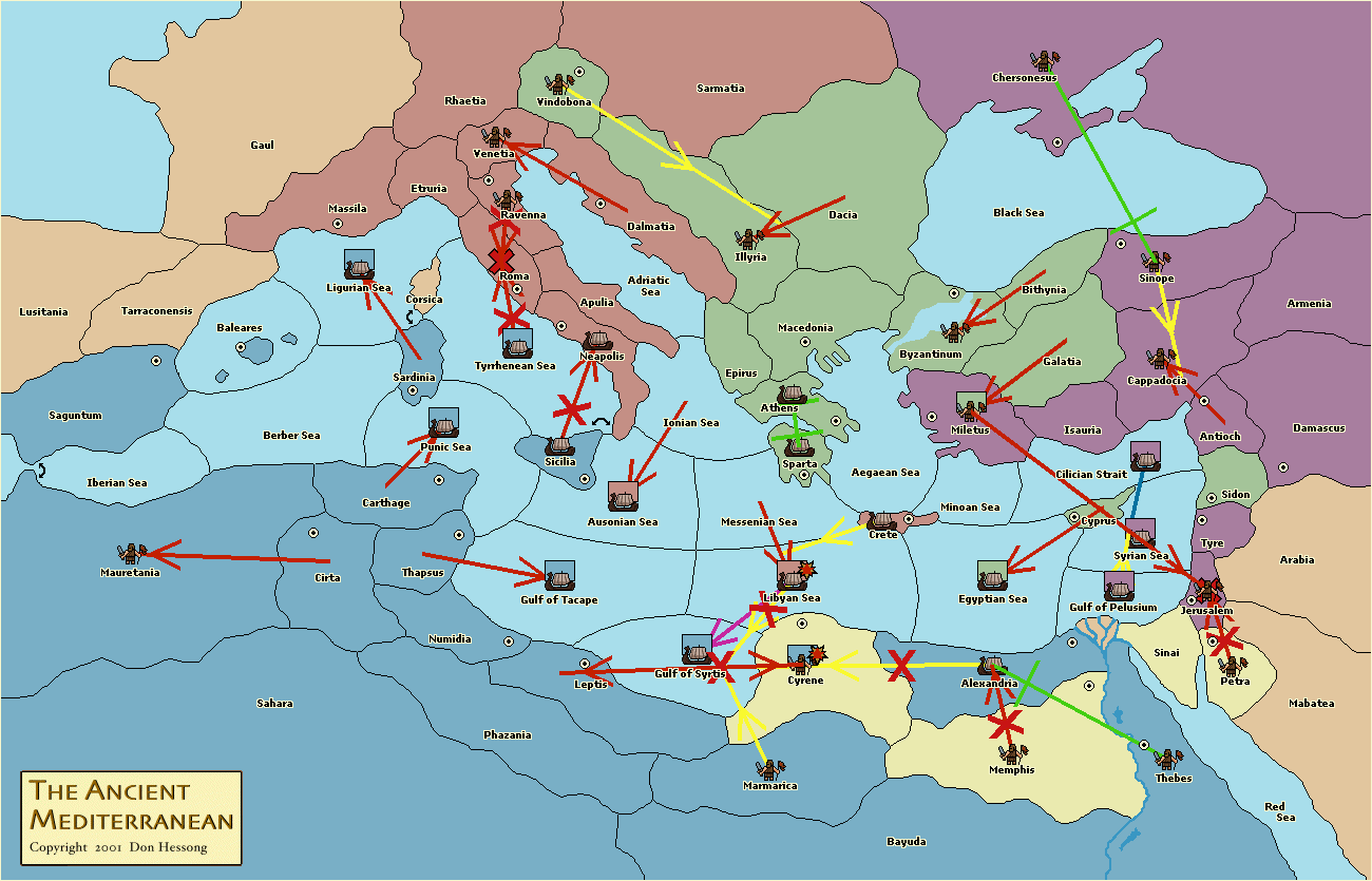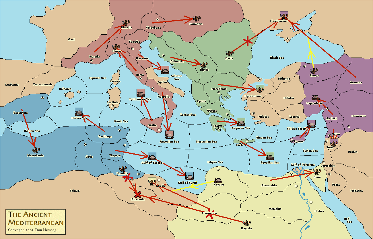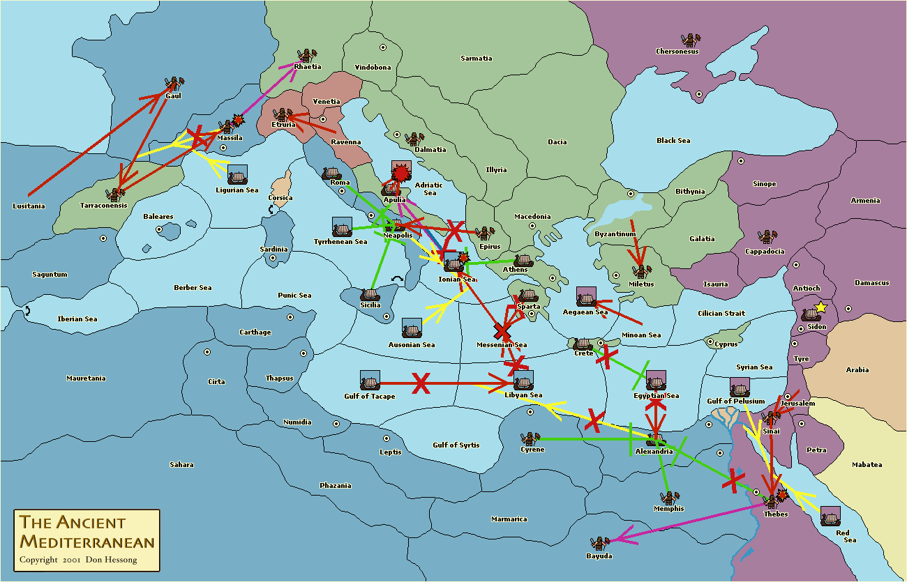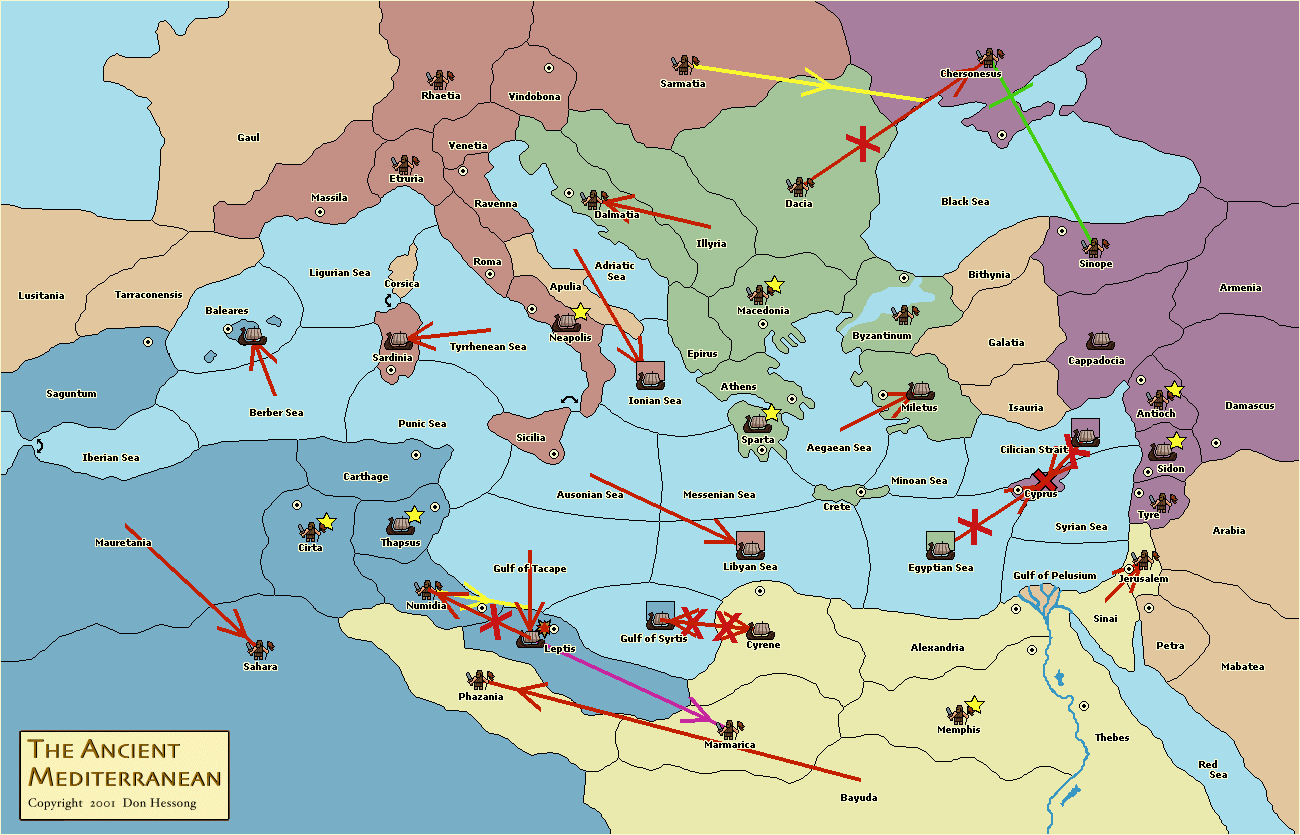 The fleet at Egyptian Sea support move to Cyprus from Cilician Strait.