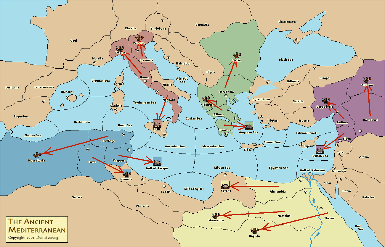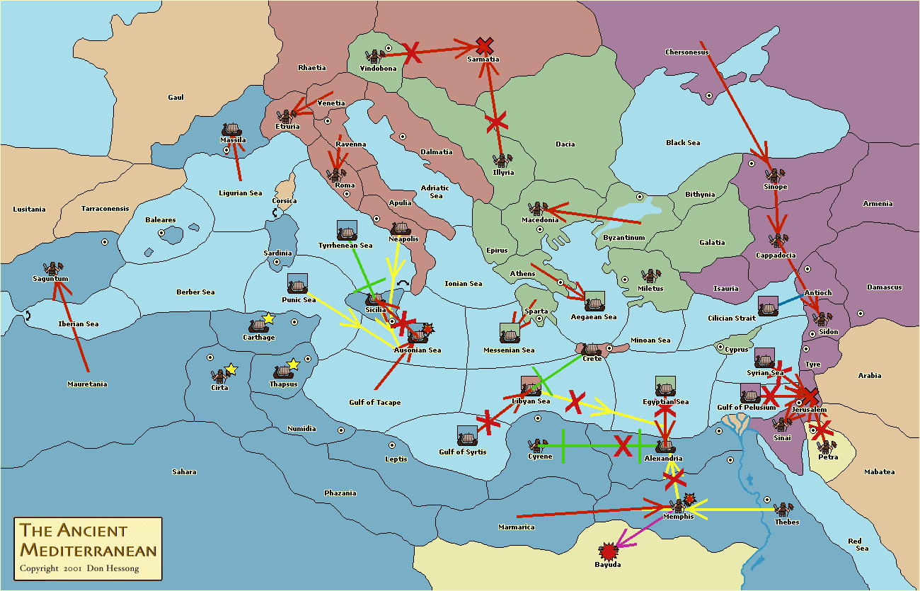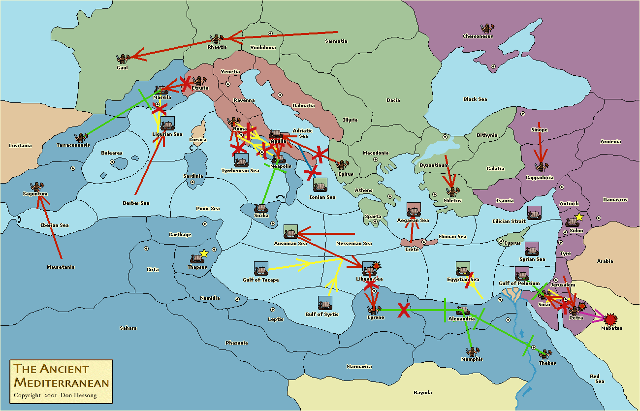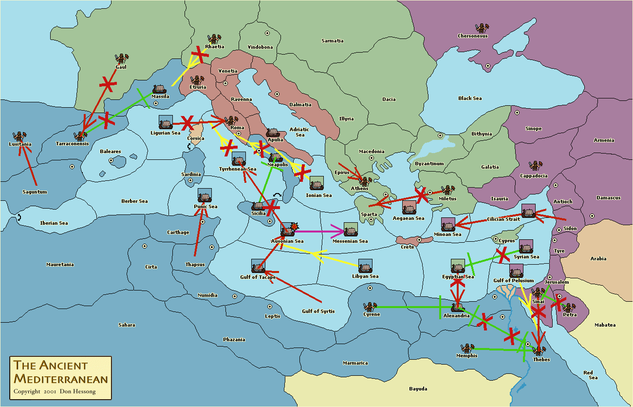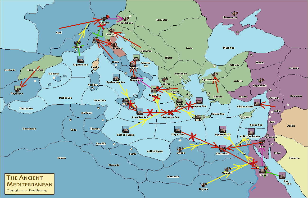 The fleet at Egyptian Sea support move to Cyprus from Cilician Strait.