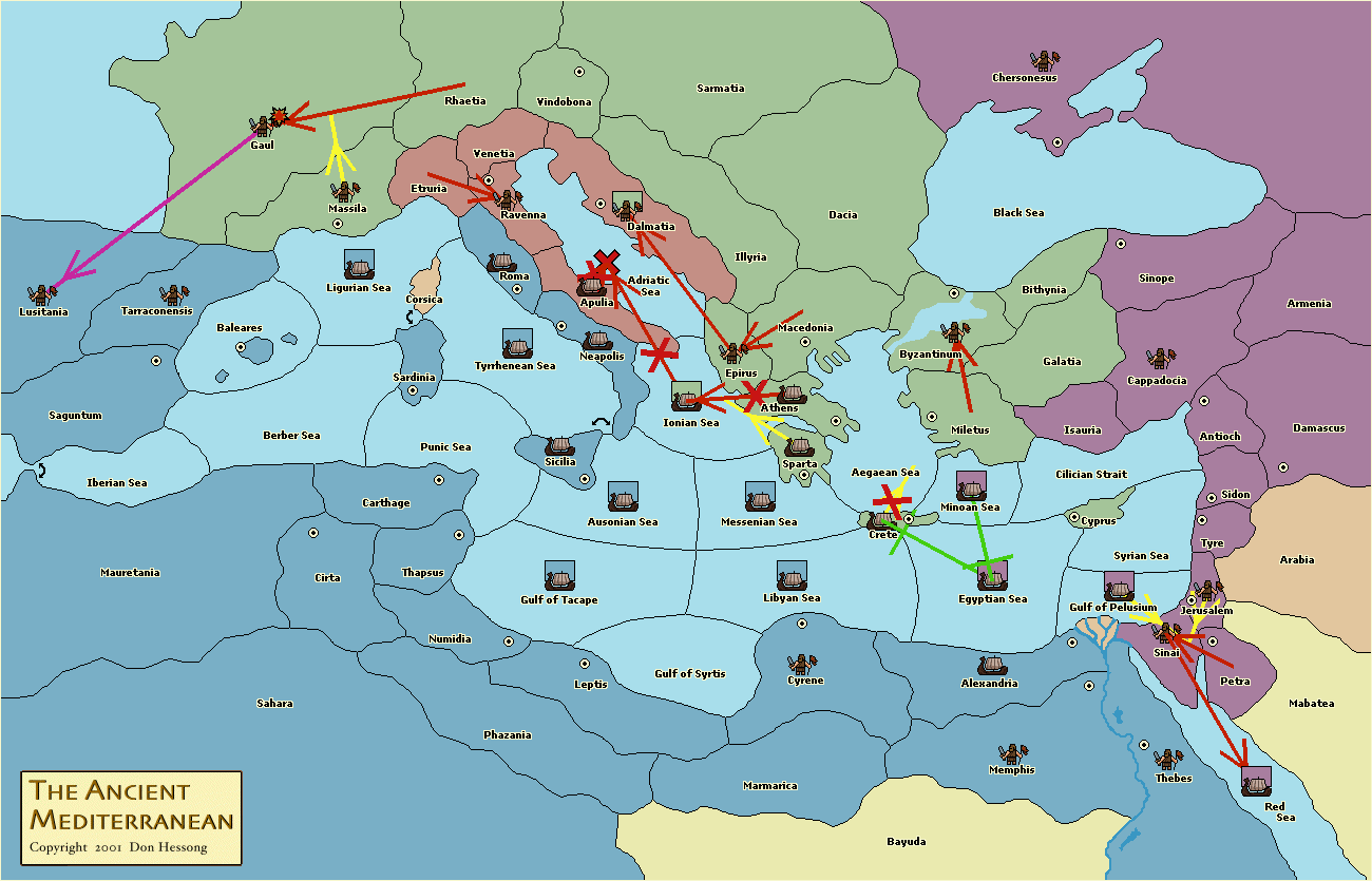 The fleet at Sparta support move to Messenian Sea from Aegean Sea.