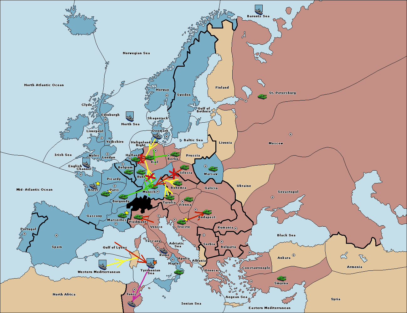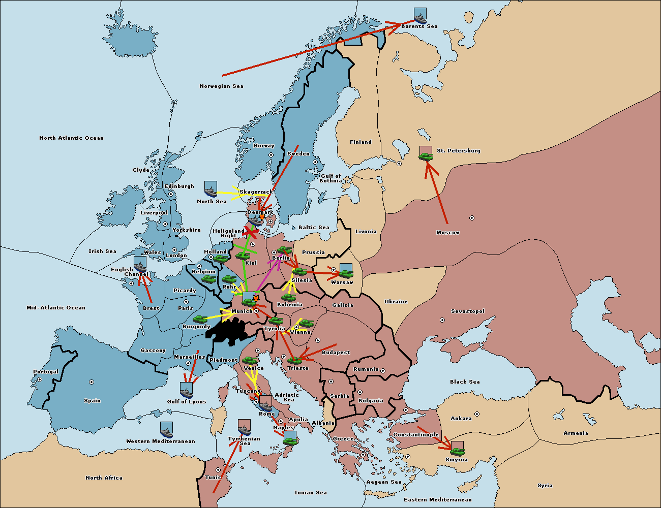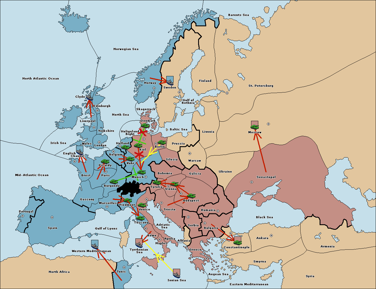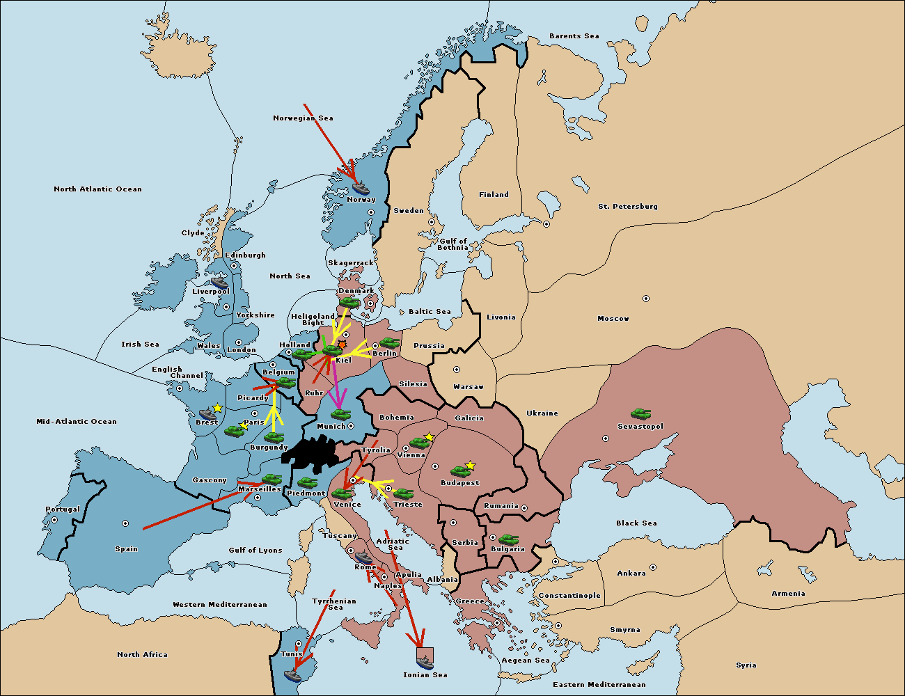 The army at Kiel support move to Munich from Tyrolia.