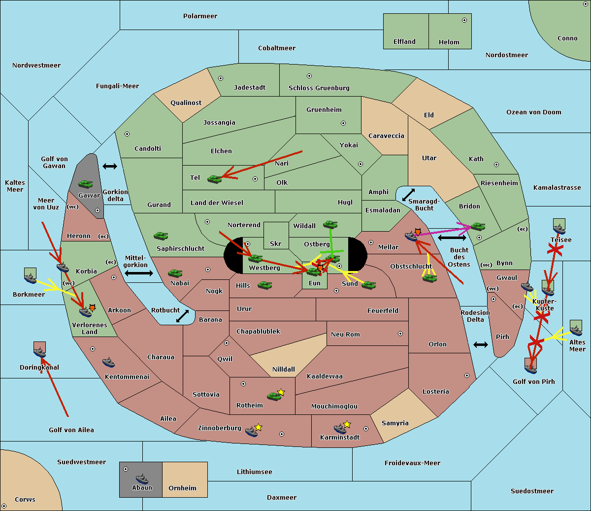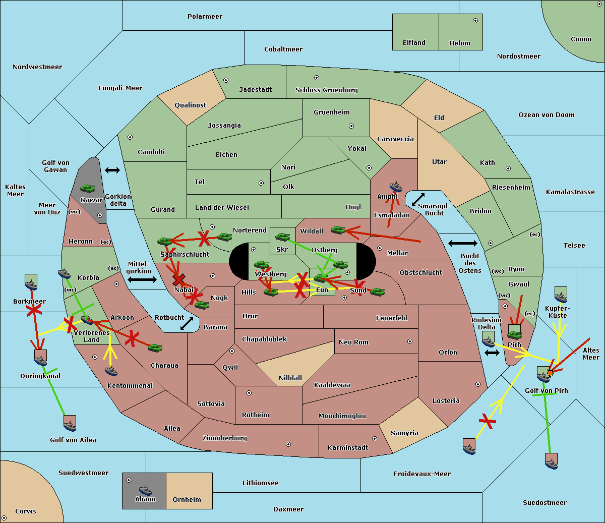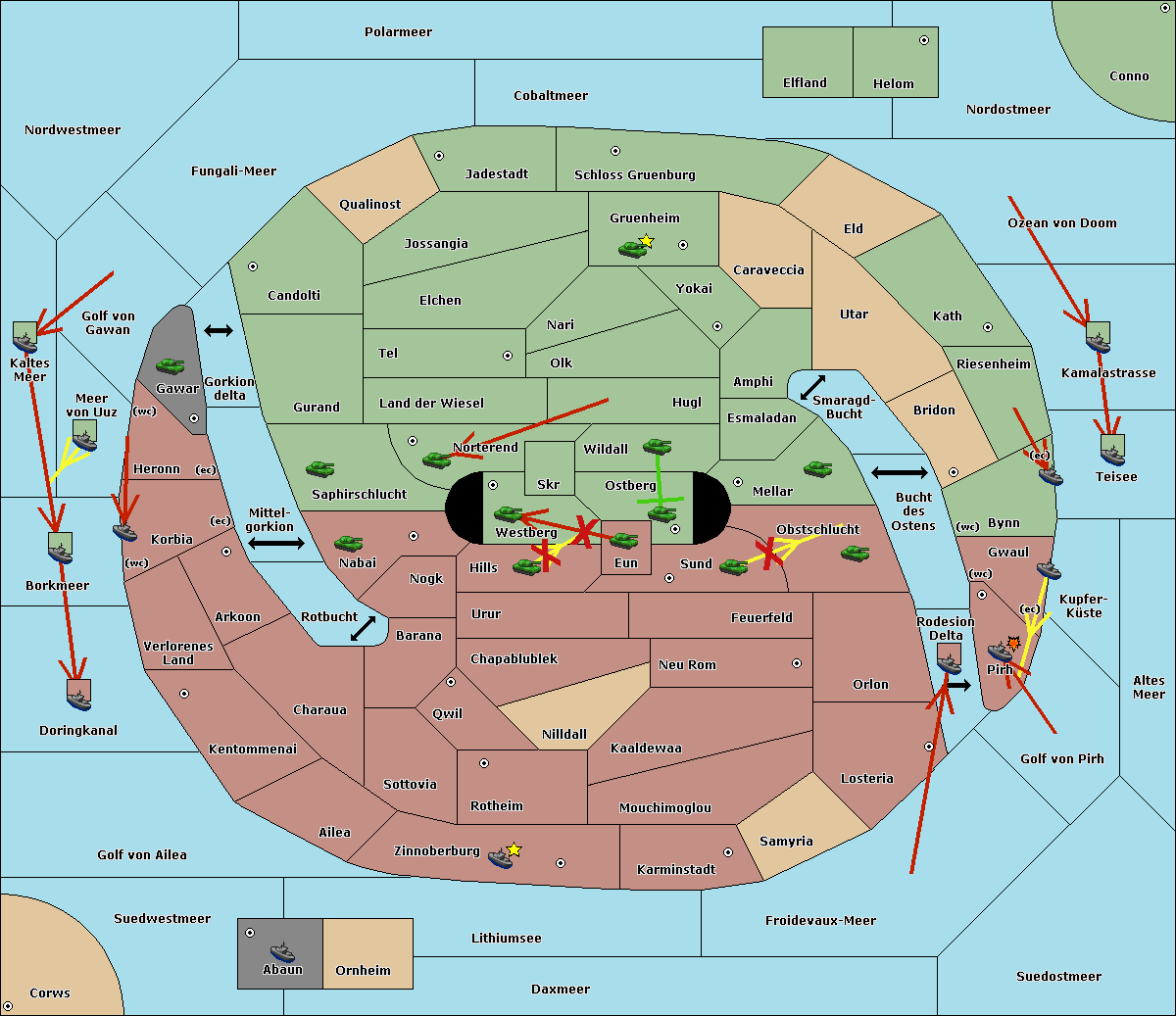 The fleet at Kaltes Meer support move to Meer von Uuz from Golf von Gawan.