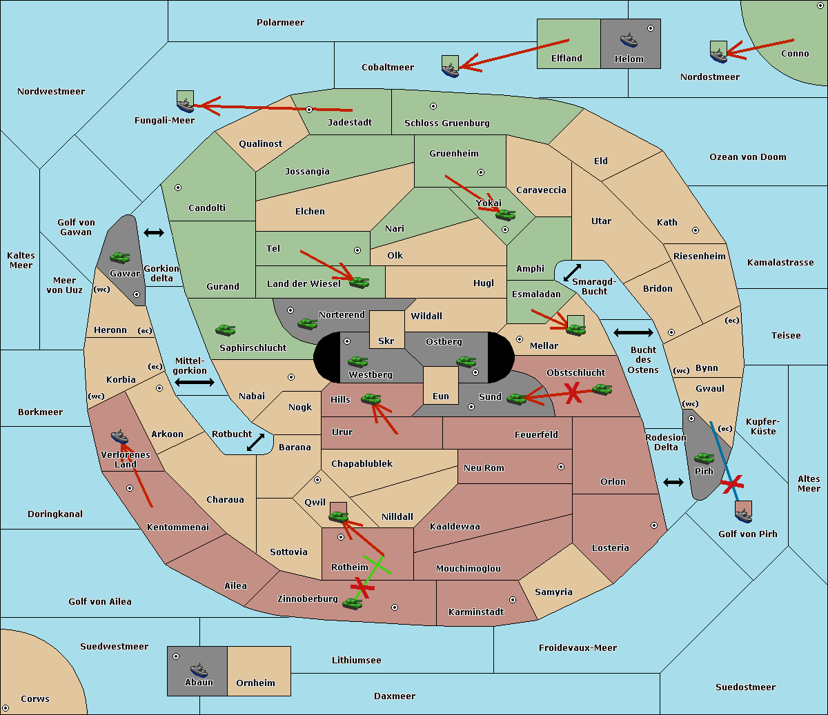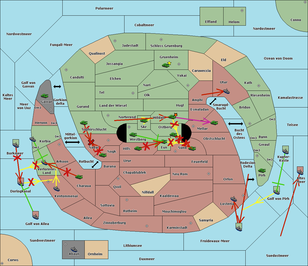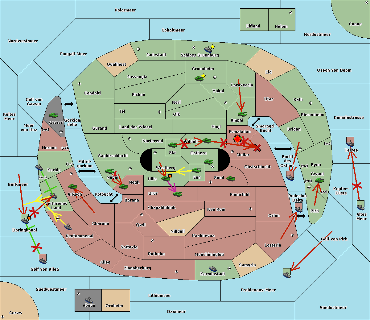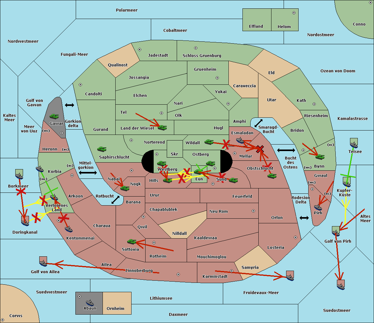 The fleet at Kaltes Meer support move to Meer von Uuz from Golf von Gawan.