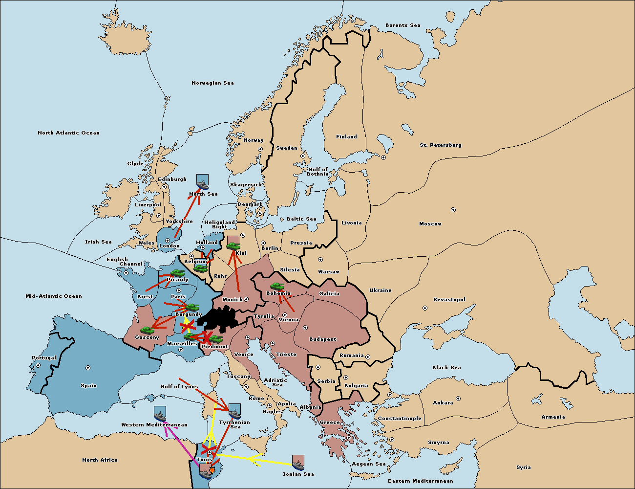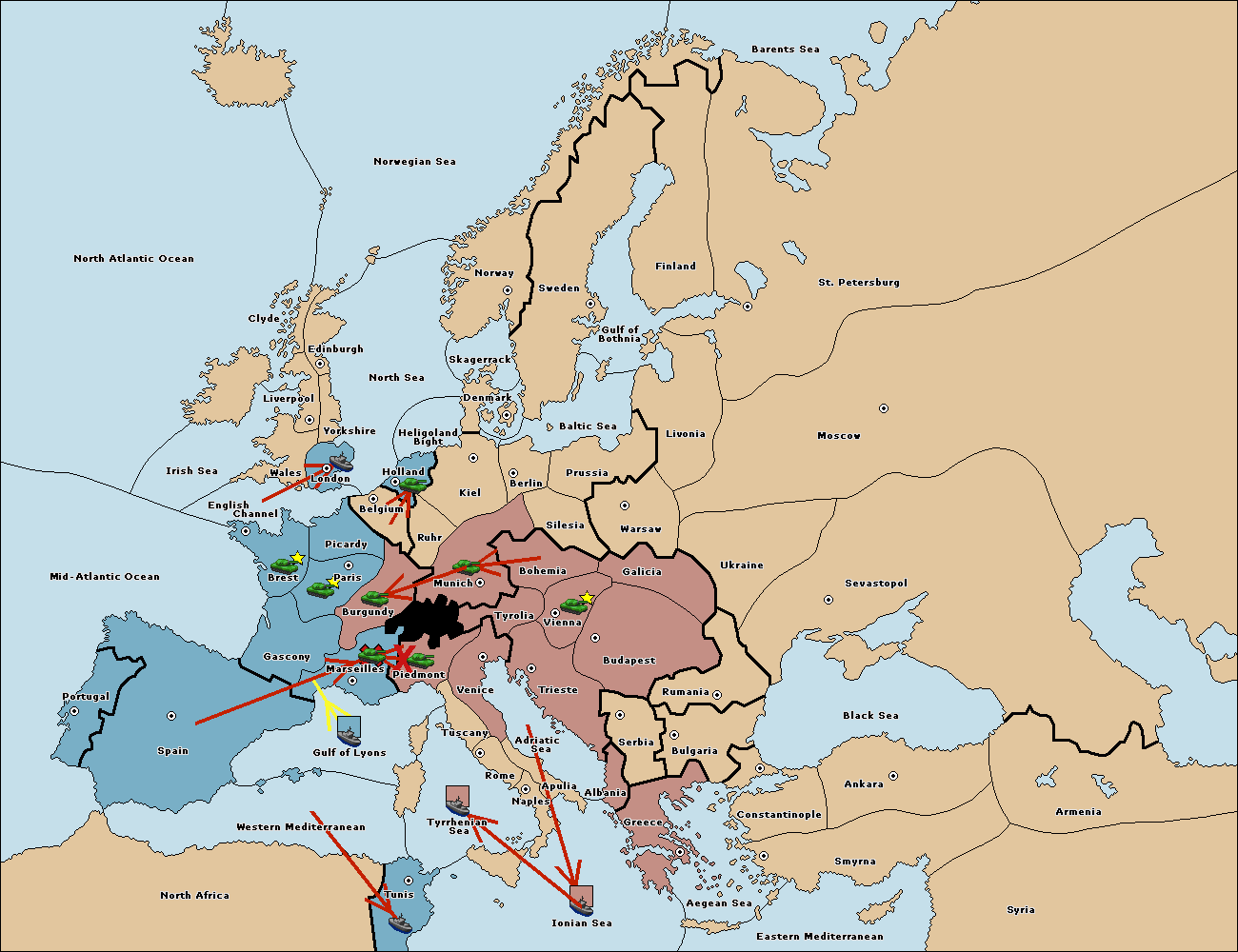 The fleet at Spain (South Coast) move to Western Mediterranean.