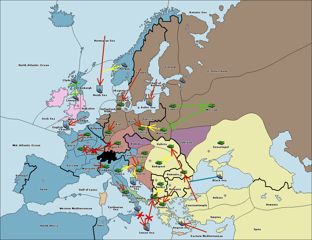 The fleet at Adriatic Sea support move to Trieste from Tyrolia.