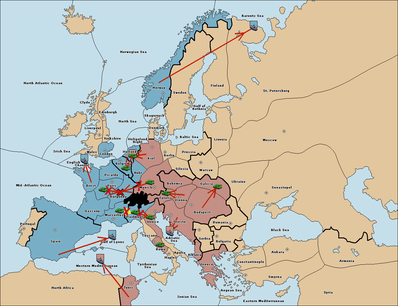 The army at Tyrolia move to Munich.