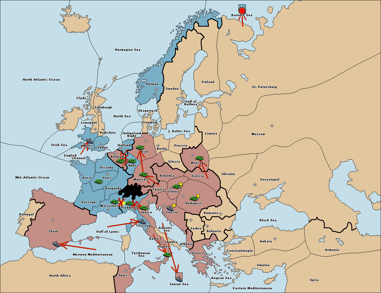 The fleet at St. Petersburg (North Coast) move to Barents Sea.