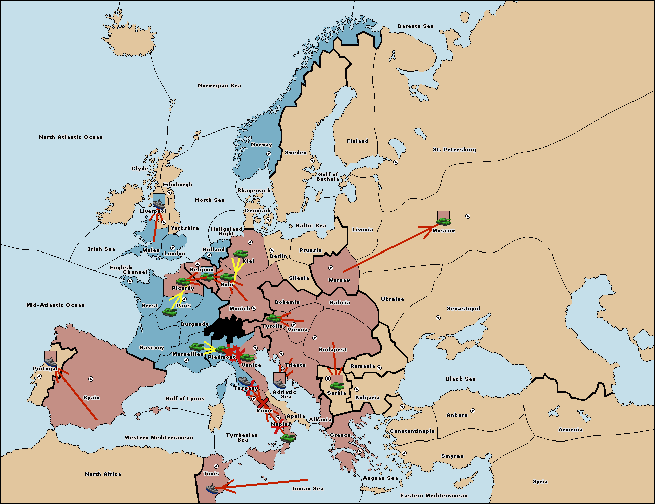 The fleet at Tuscany move to Tyrrhenian Sea.