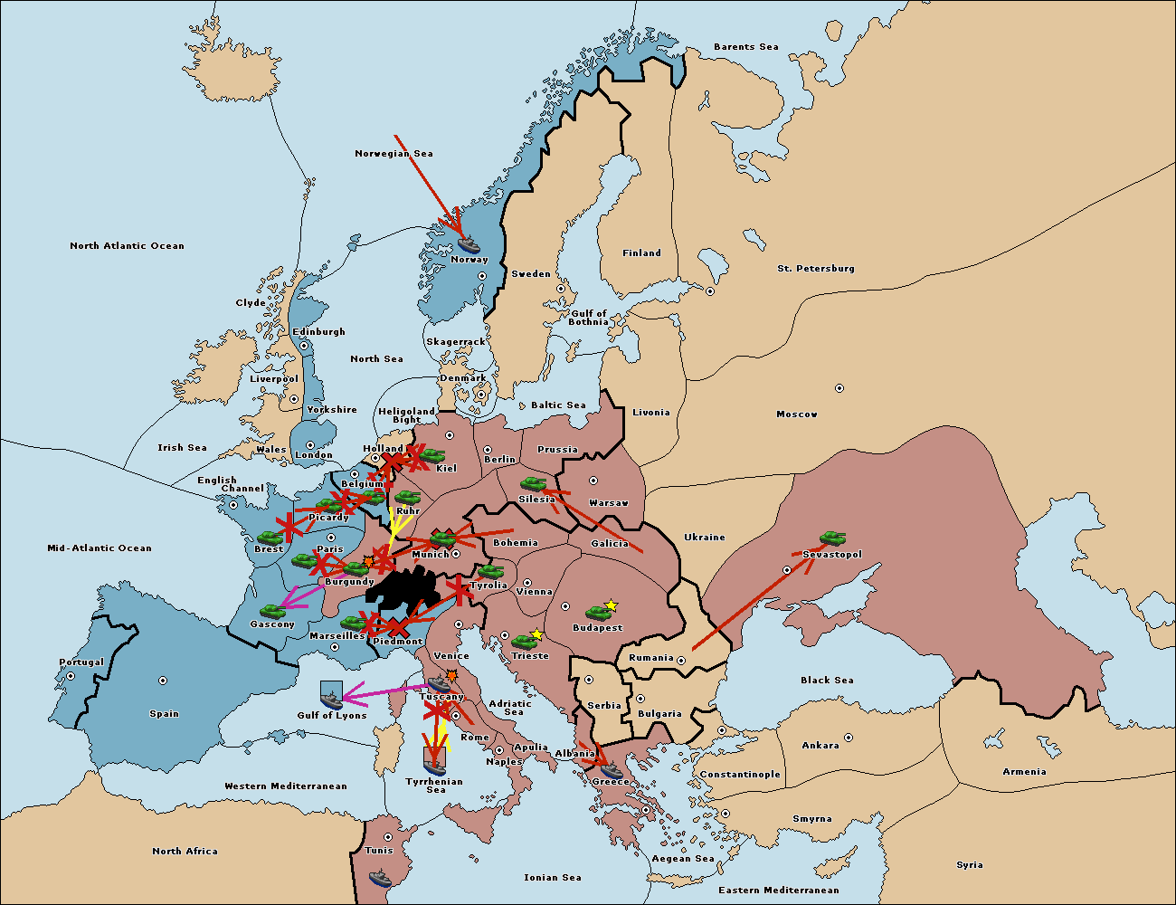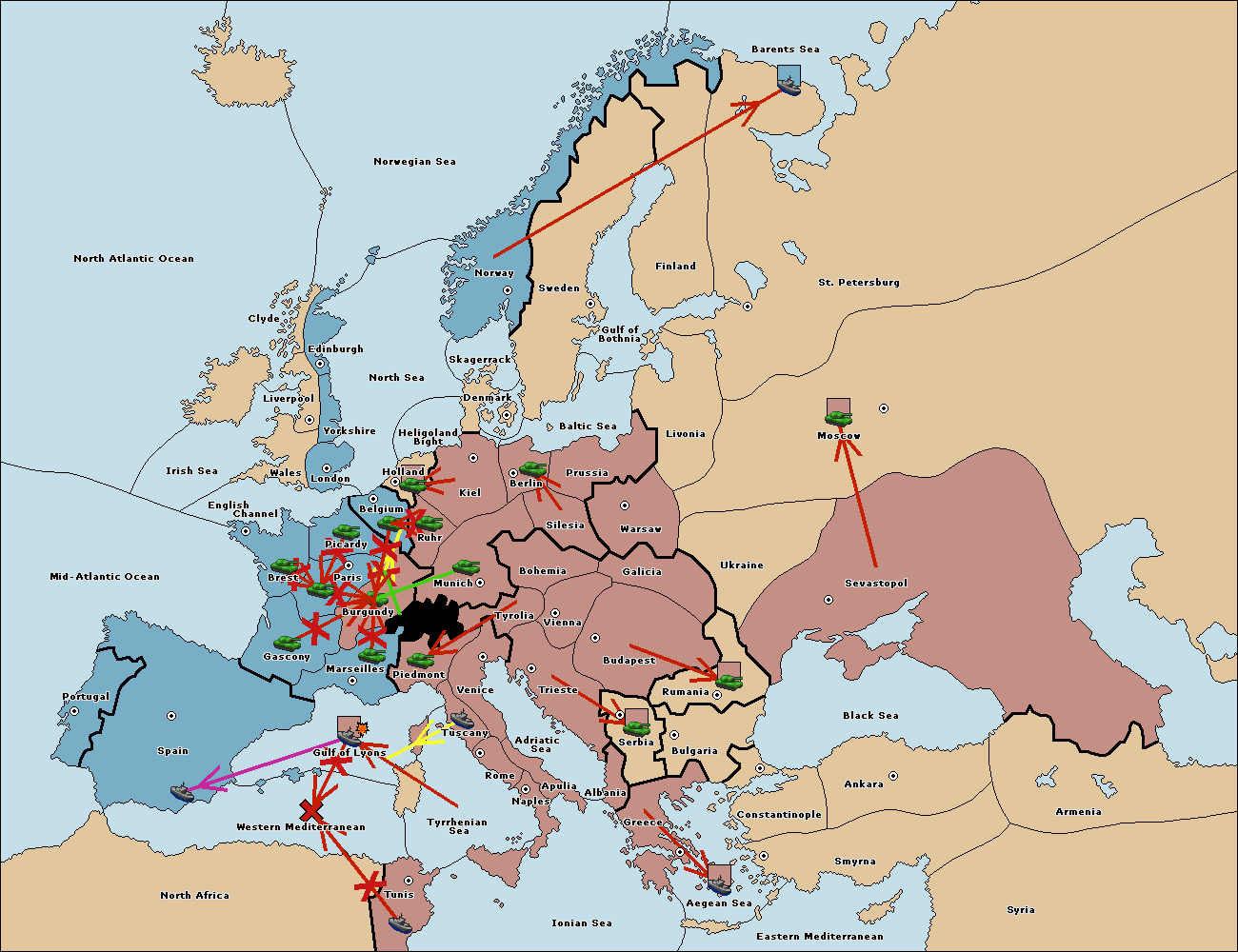 The fleet at Tuscany support move to Gulf of Lyons from Tyrrhenian Sea.