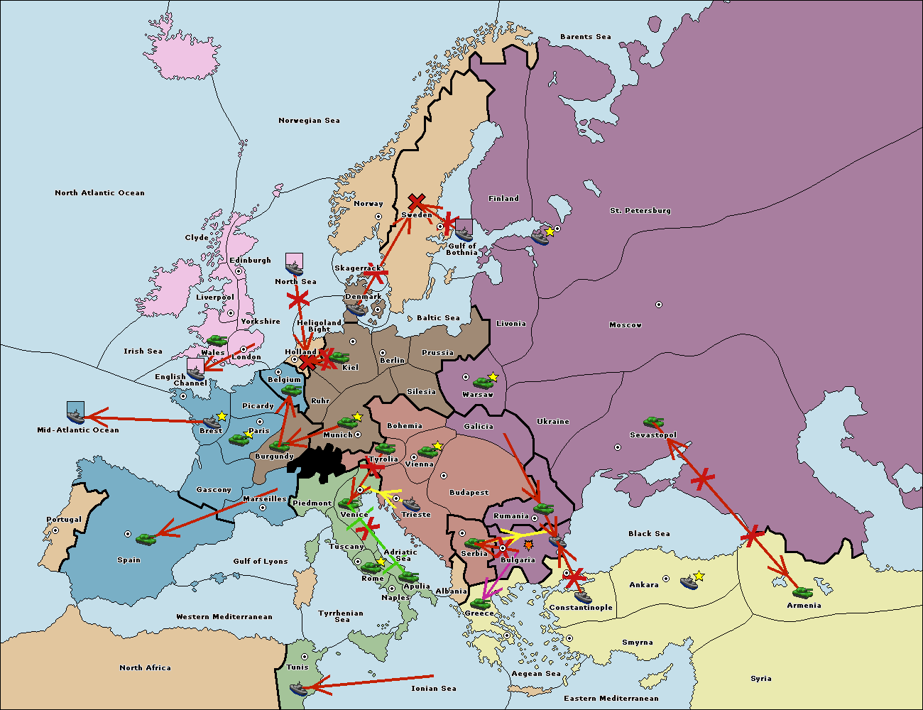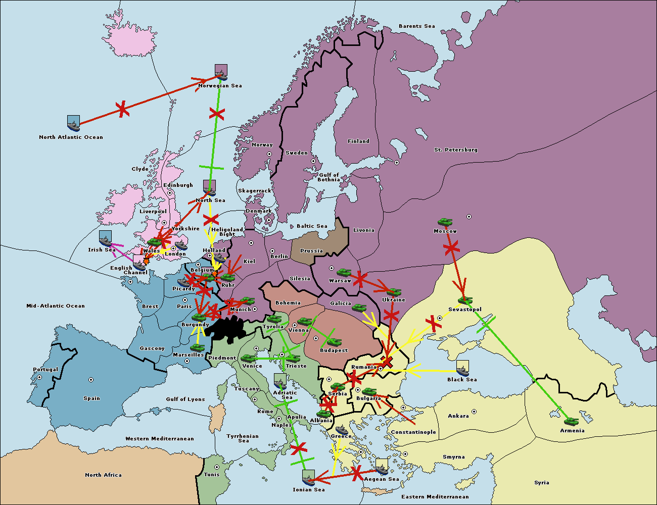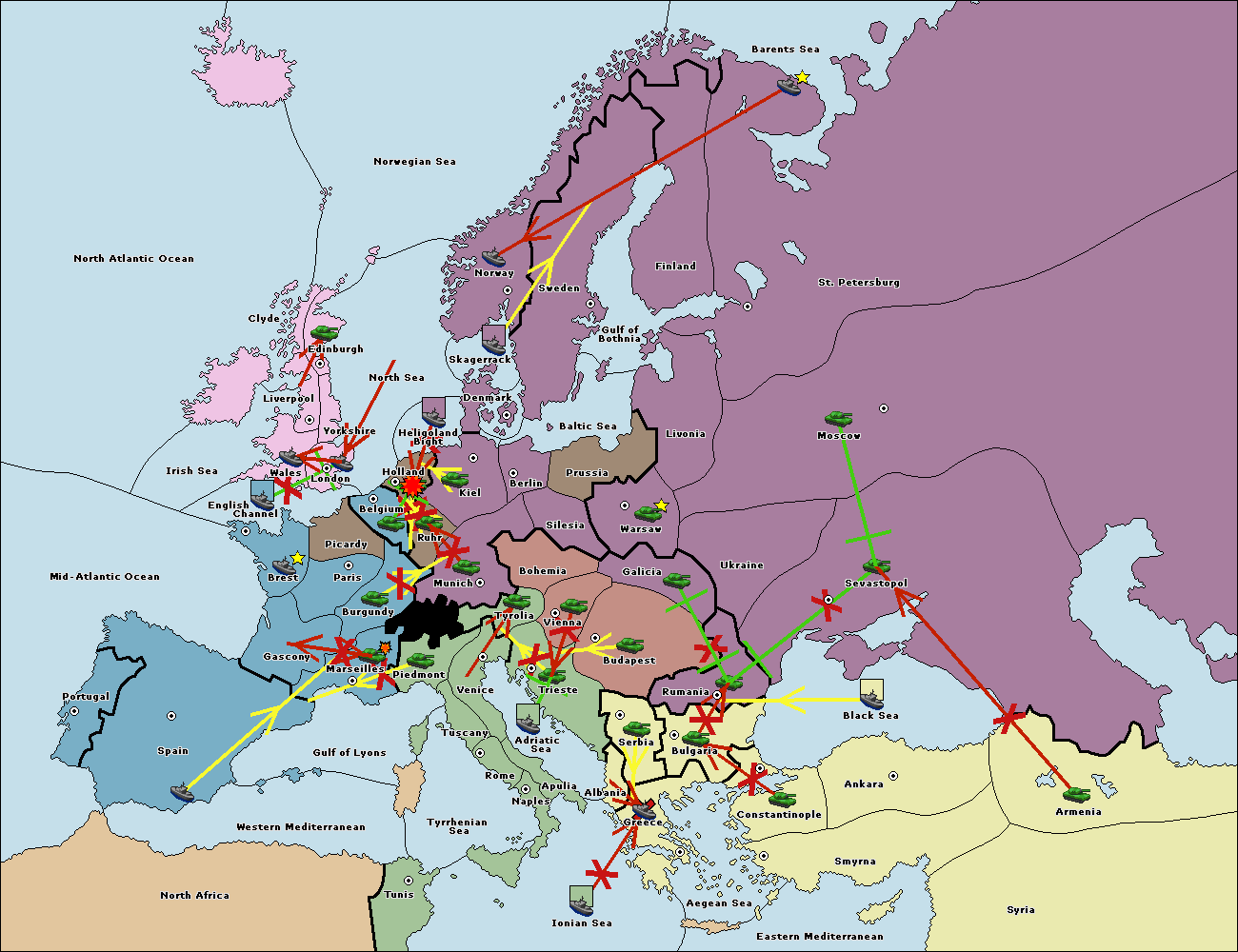 The fleet at Bulgaria (North Coast) support hold to Constantinople.