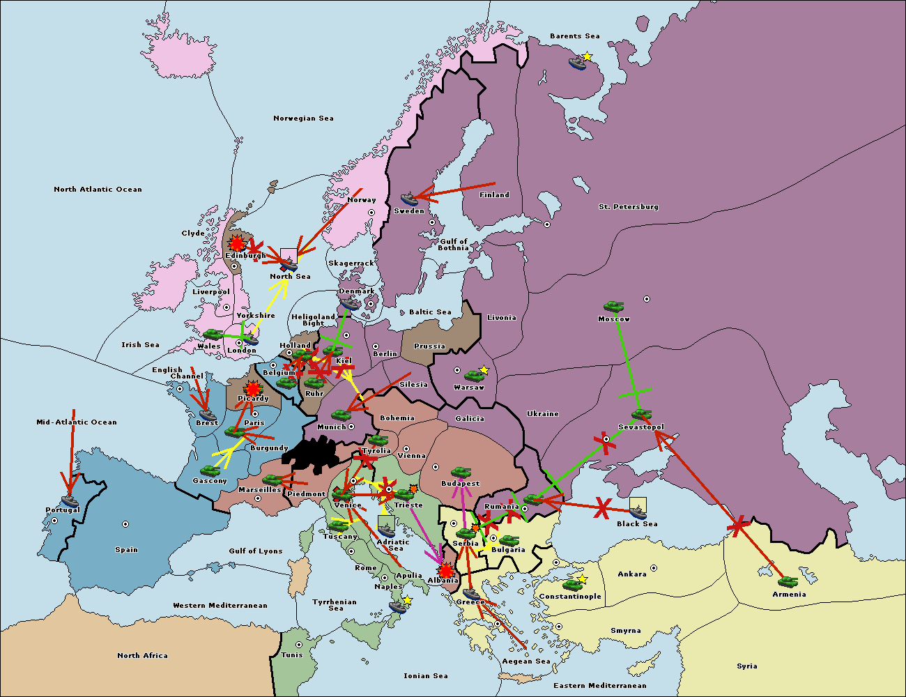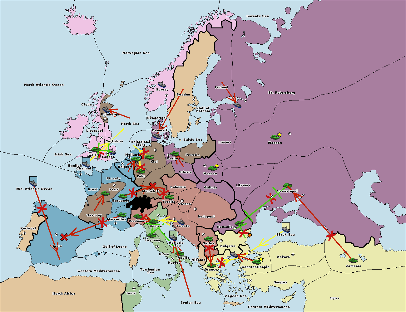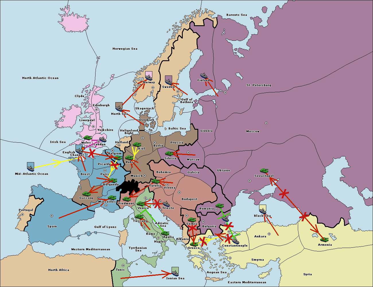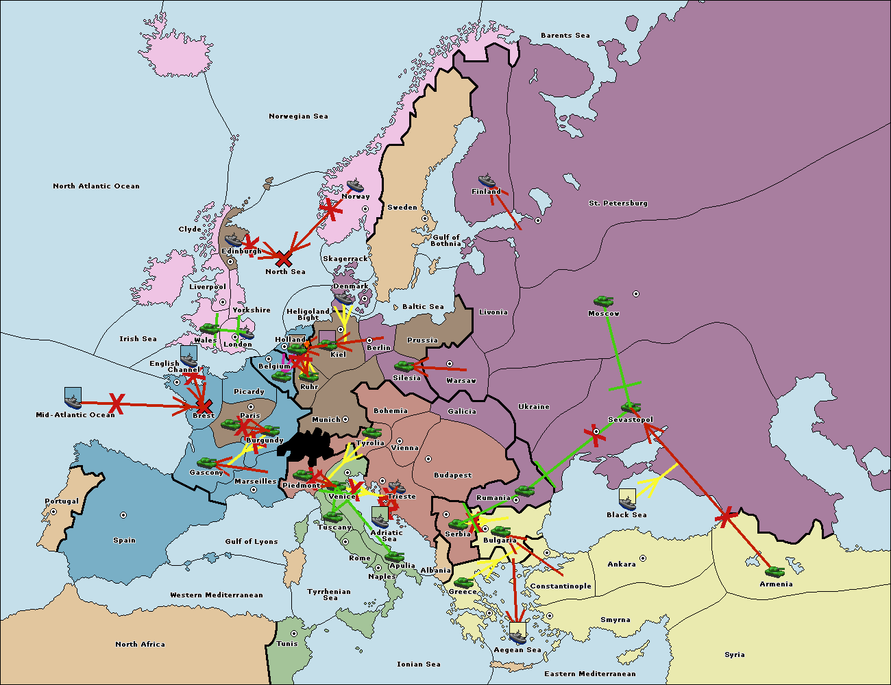 The fleet at Bulgaria (North Coast) support hold to Constantinople.