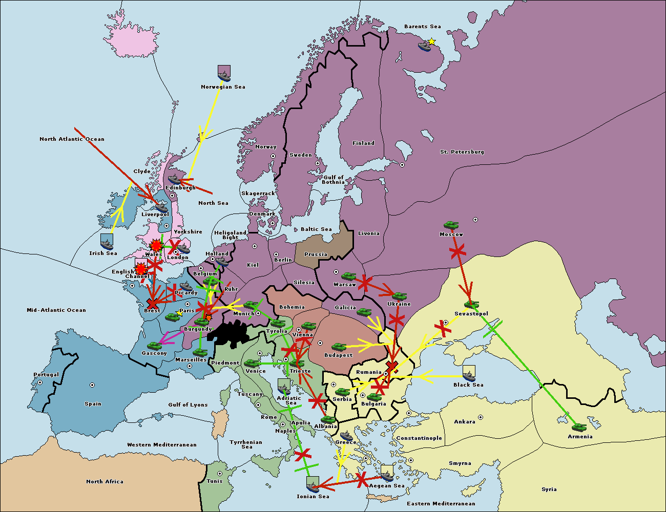 The fleet at Bulgaria (South Coast) move to Aegean Sea.
