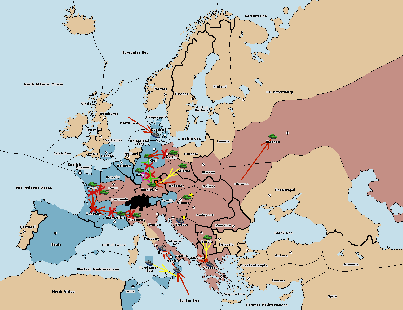 The fleet at Tyrrhenian Sea support move to Naples from Ionian Sea.