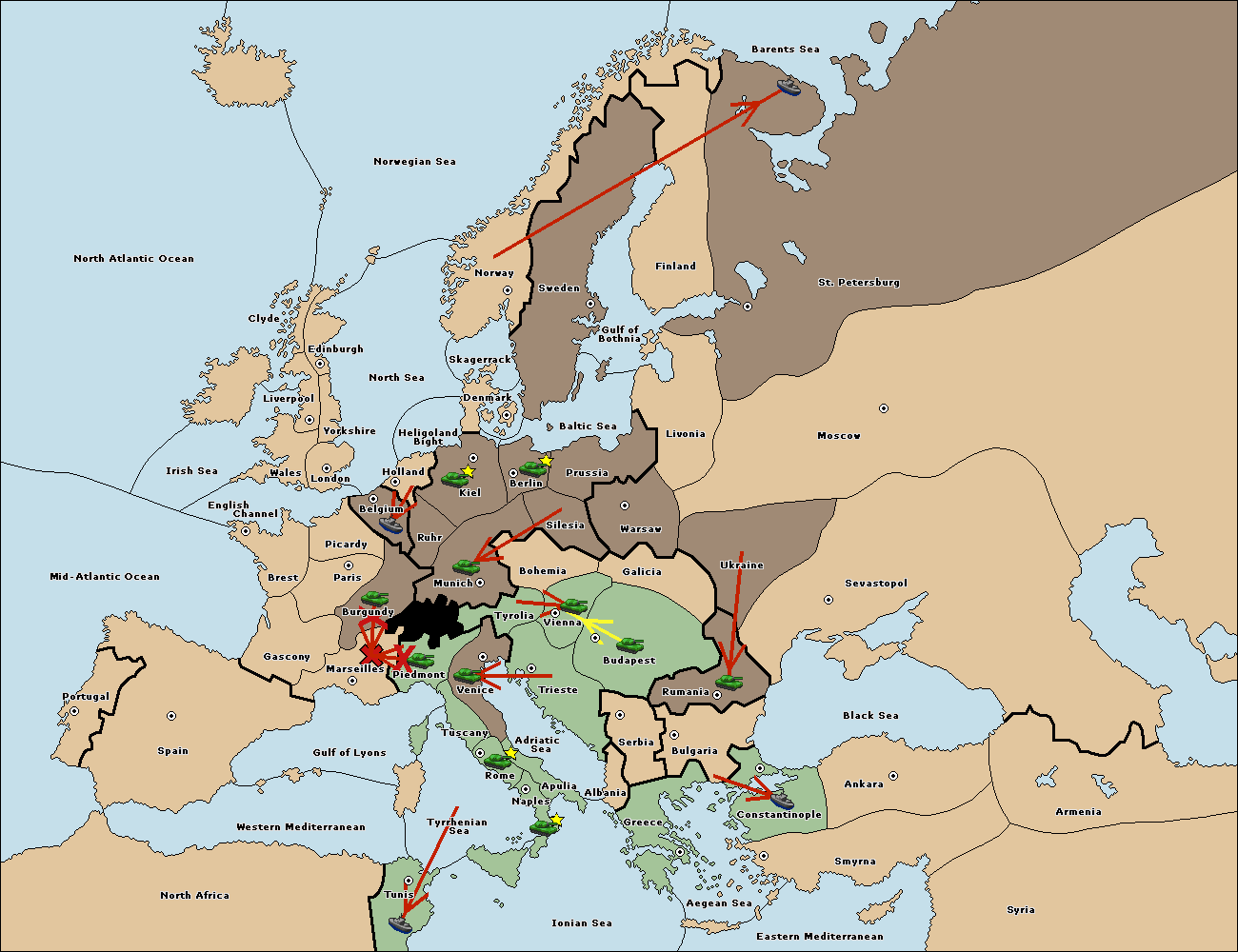 The fleet at Bulgaria (South Coast) move to Aegean Sea.