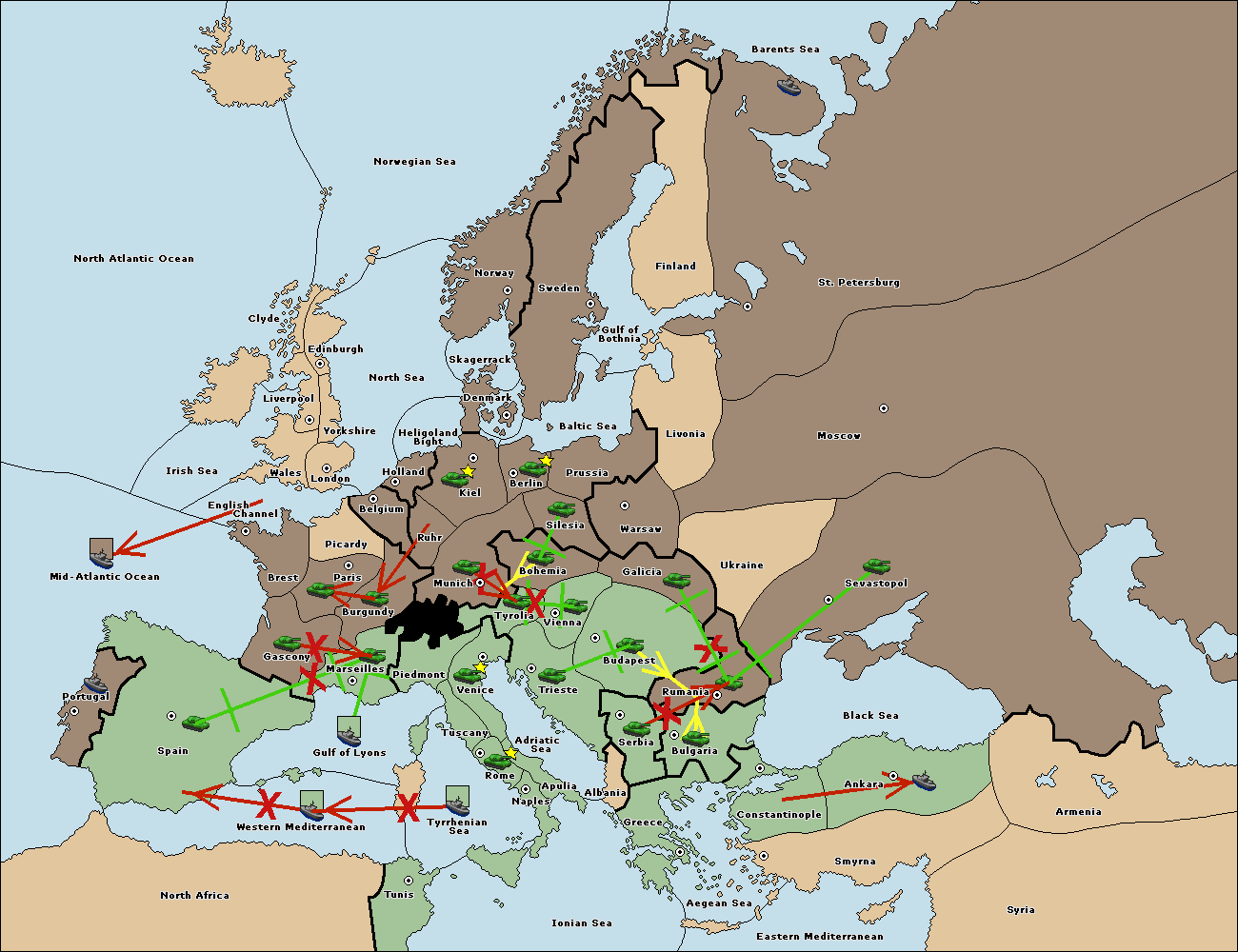 The fleet at Bulgaria (South Coast) move to Constantinople.