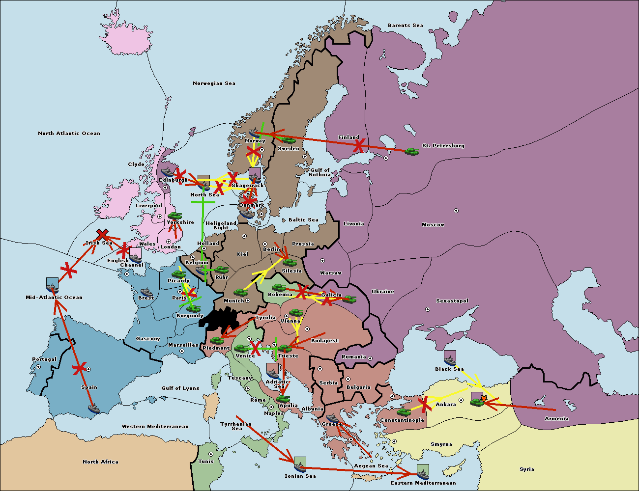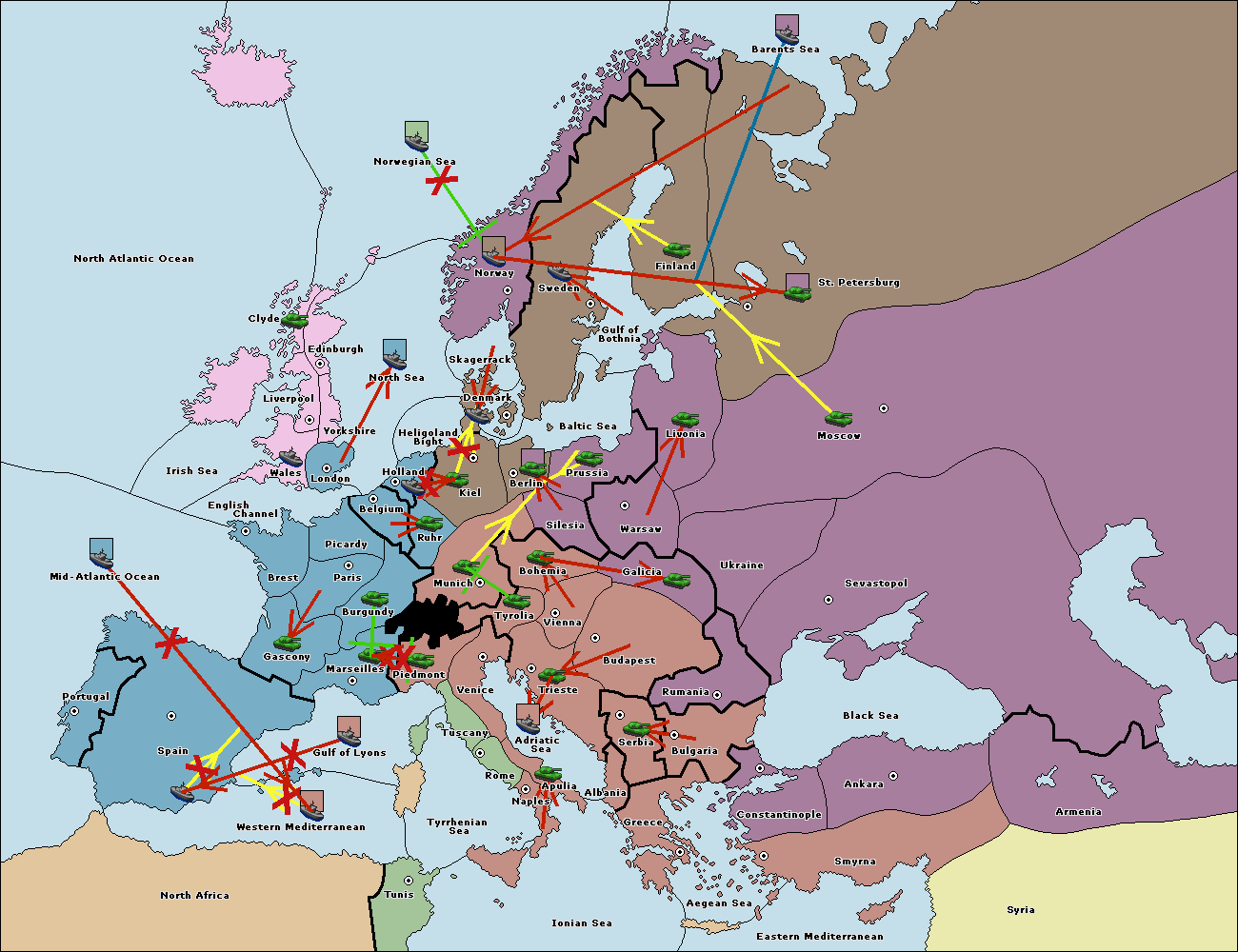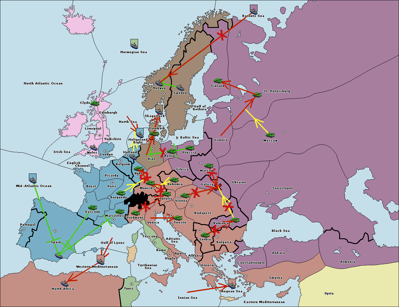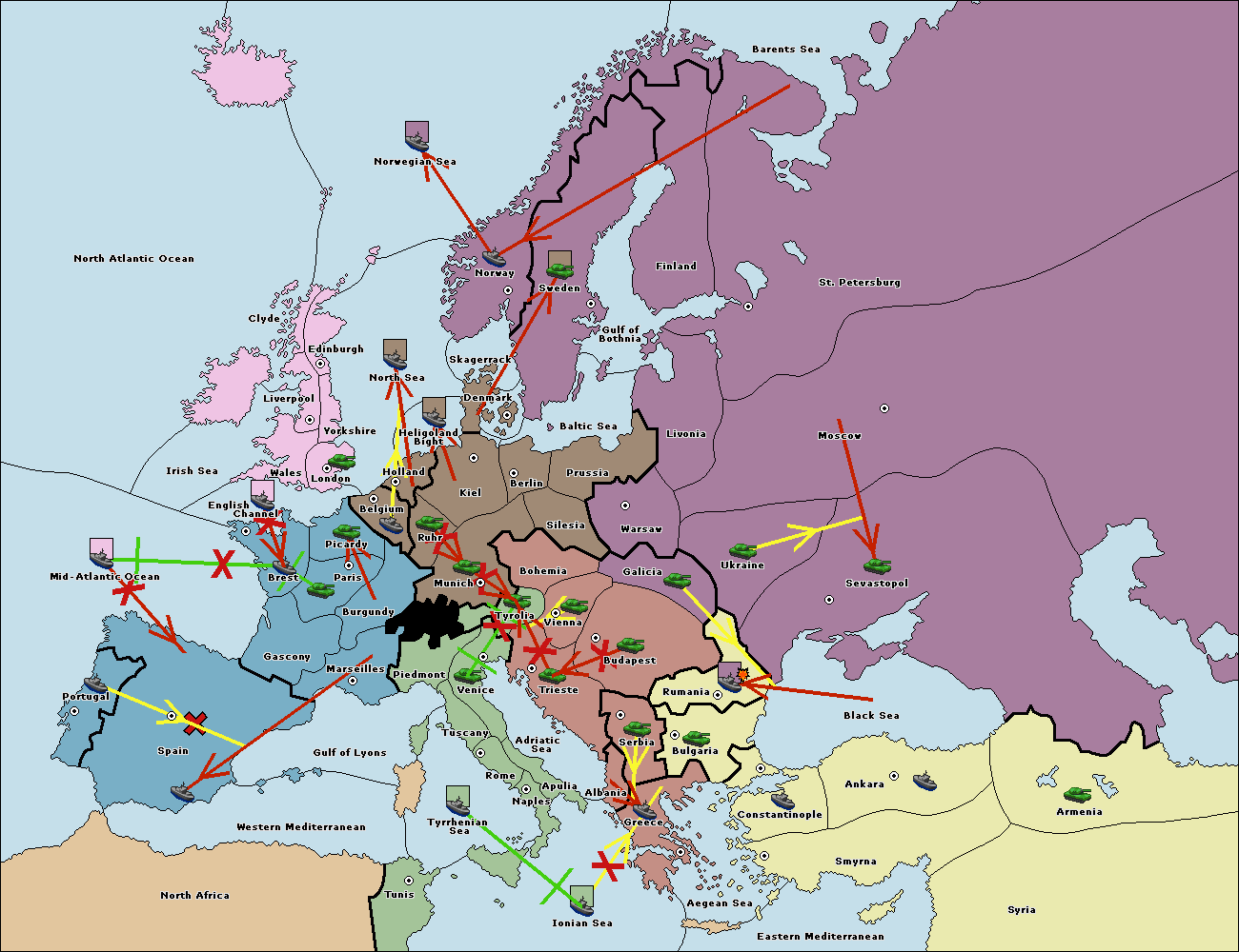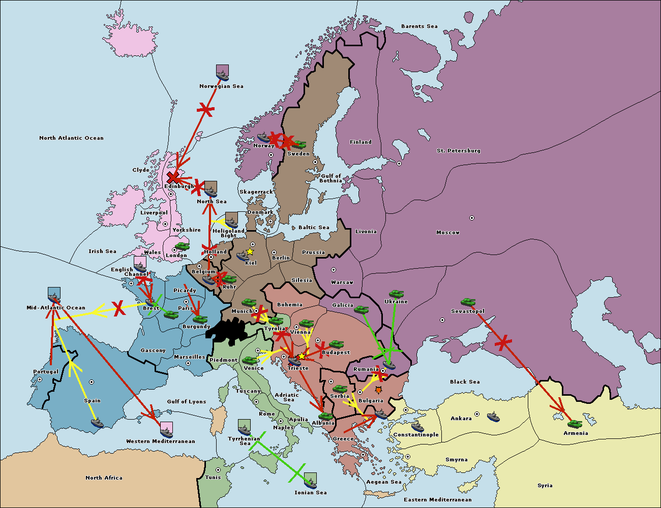 The fleet at North Africa move to Mid-Atlantic Ocean.