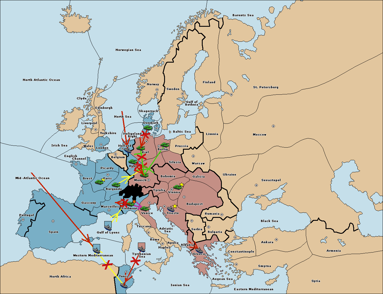 The fleet at Gulf of Lyons move to Tyrrhenian Sea.