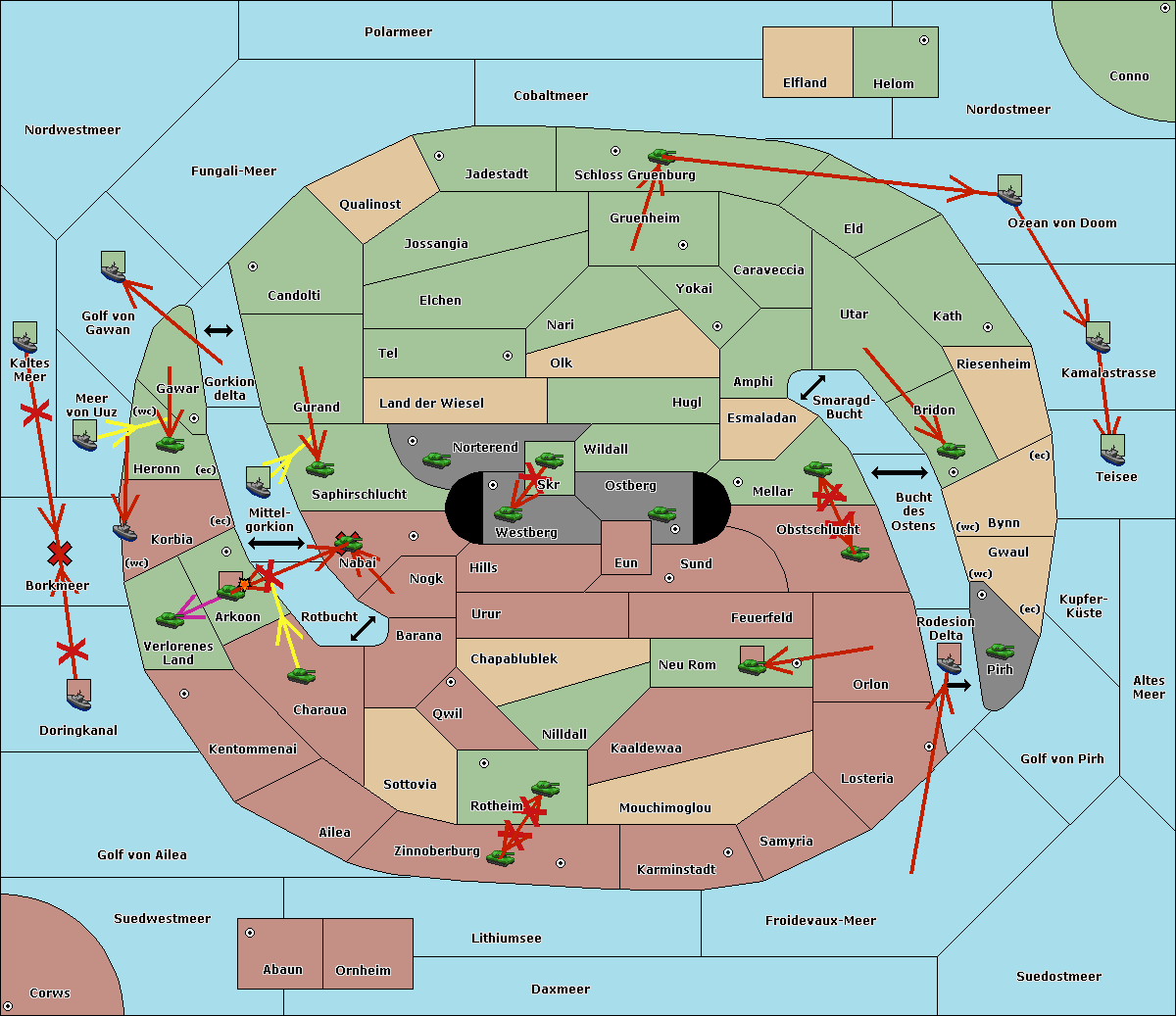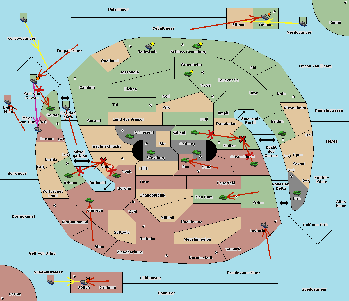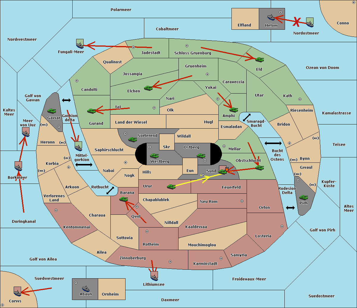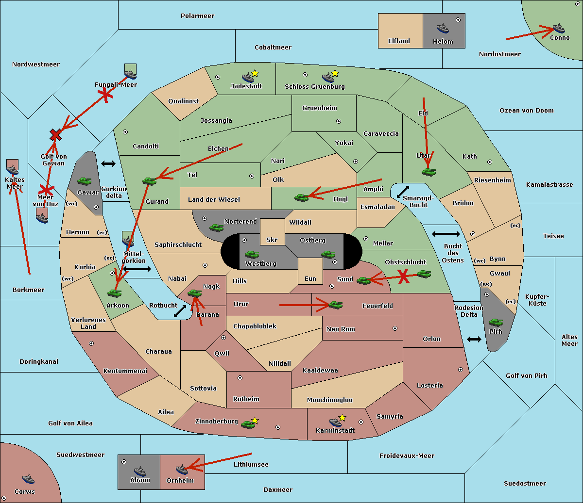 The fleet at Kaltes Meer support move to Meer von Uuz from Golf von Gawan.