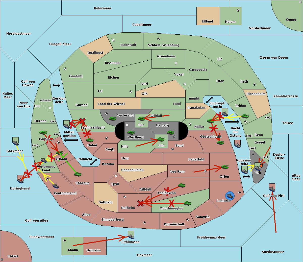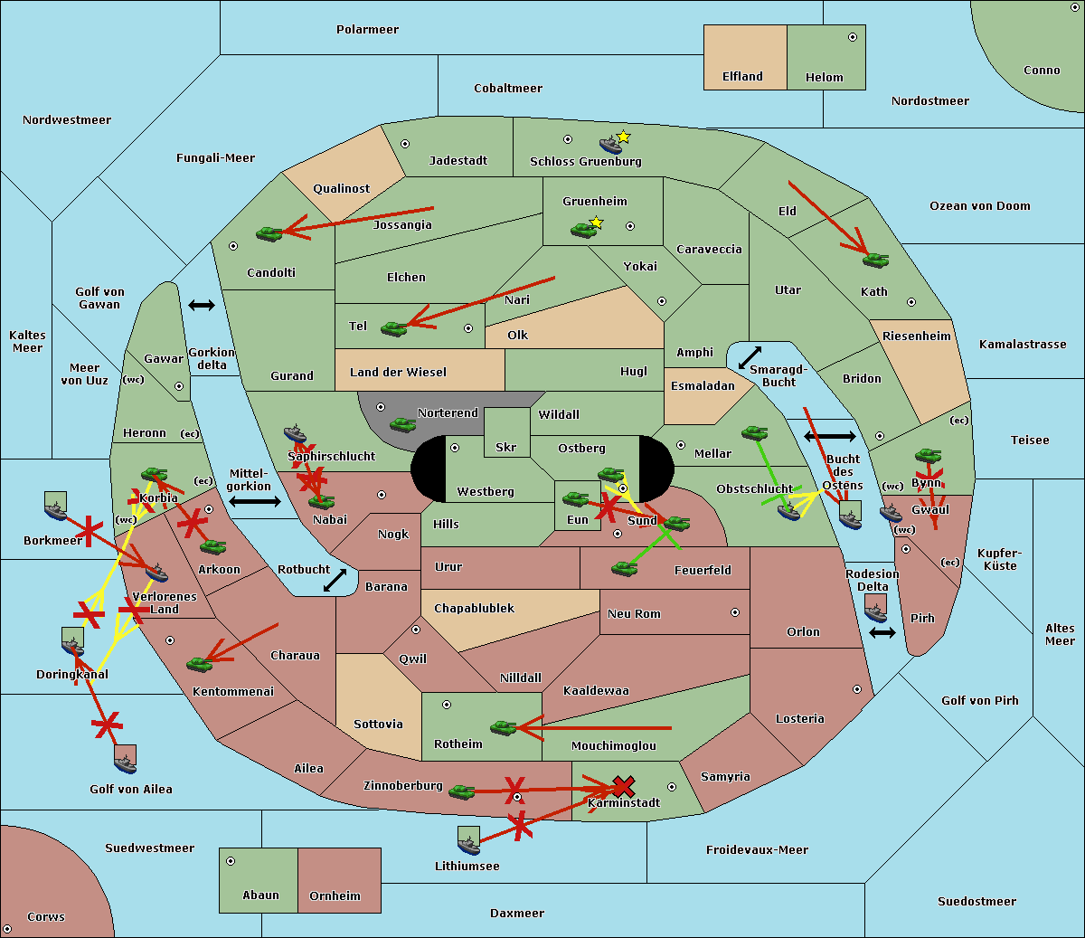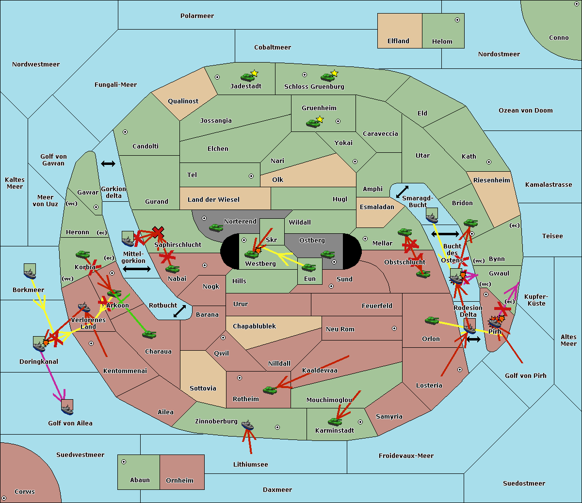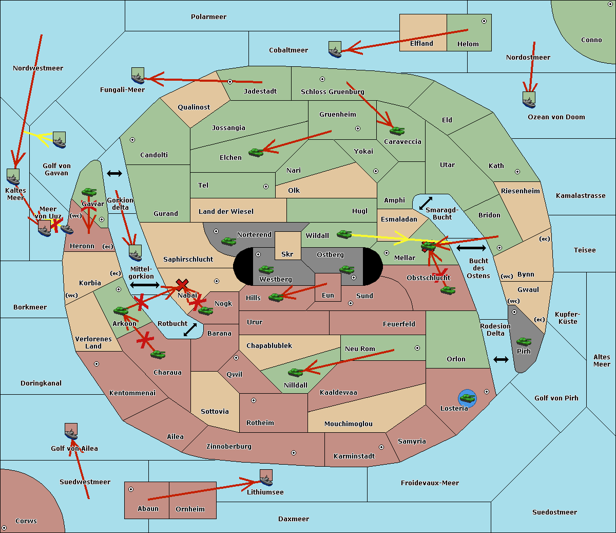 The fleet at Kaltes Meer support move to Meer von Uuz from Golf von Gawan.