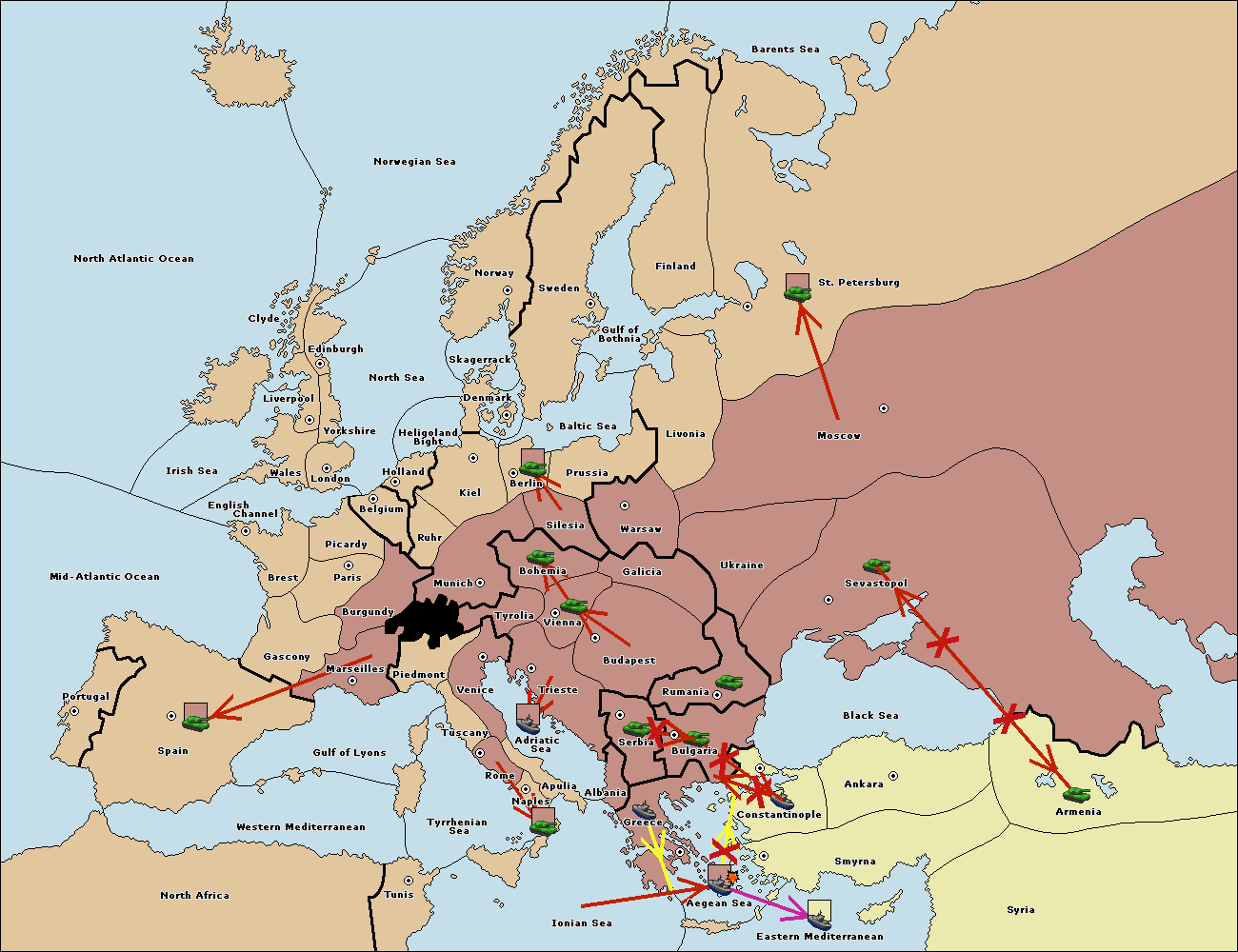 The fleet at Aegean Sea support move to Bulgaria from Constantinople.