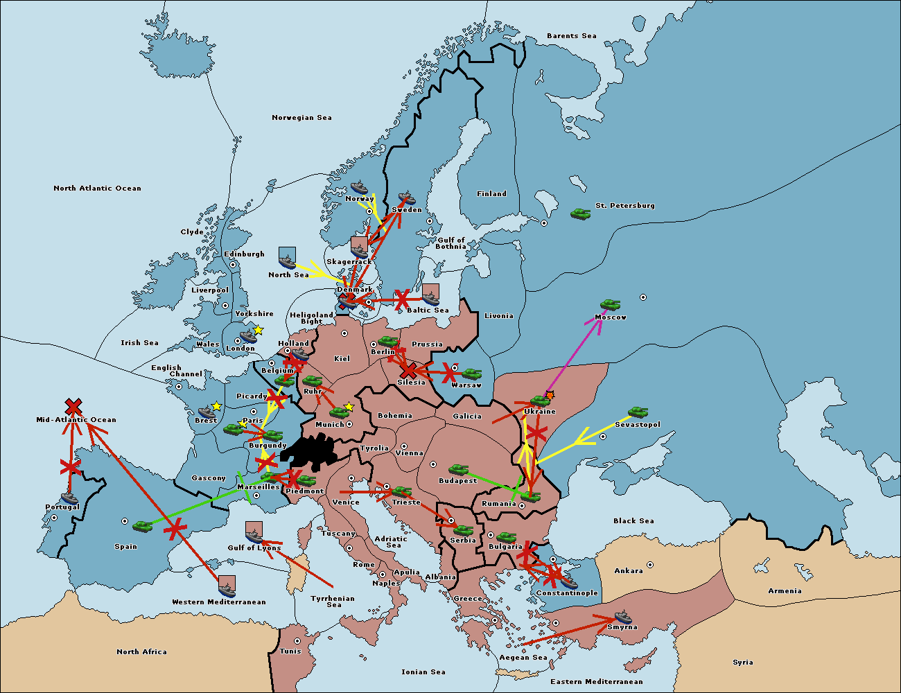 The fleet at Tyrrhenian Sea move to Gulf of Lyons.