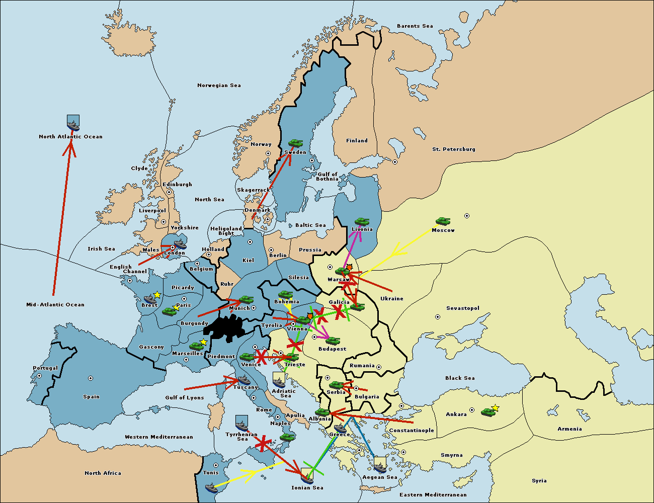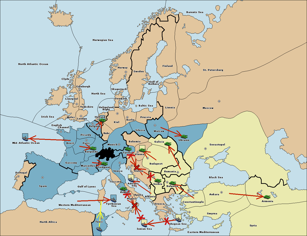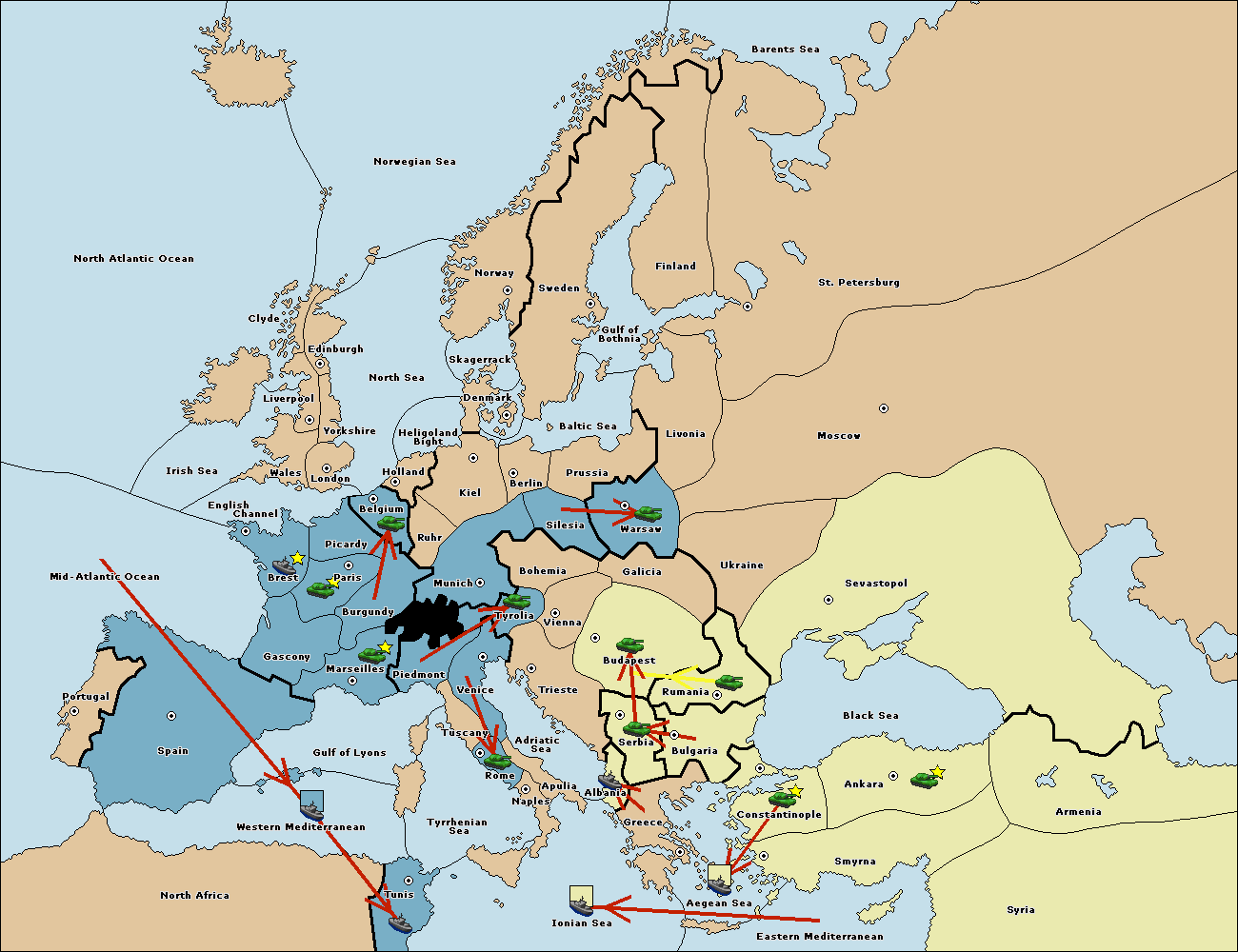 The fleet at Mid-Atlantic Ocean move to Western Mediterranean.