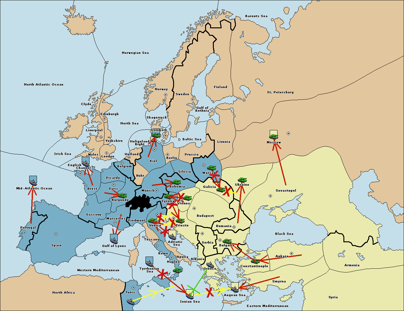 The fleet at Aegean Sea support hold to Ionian Sea.