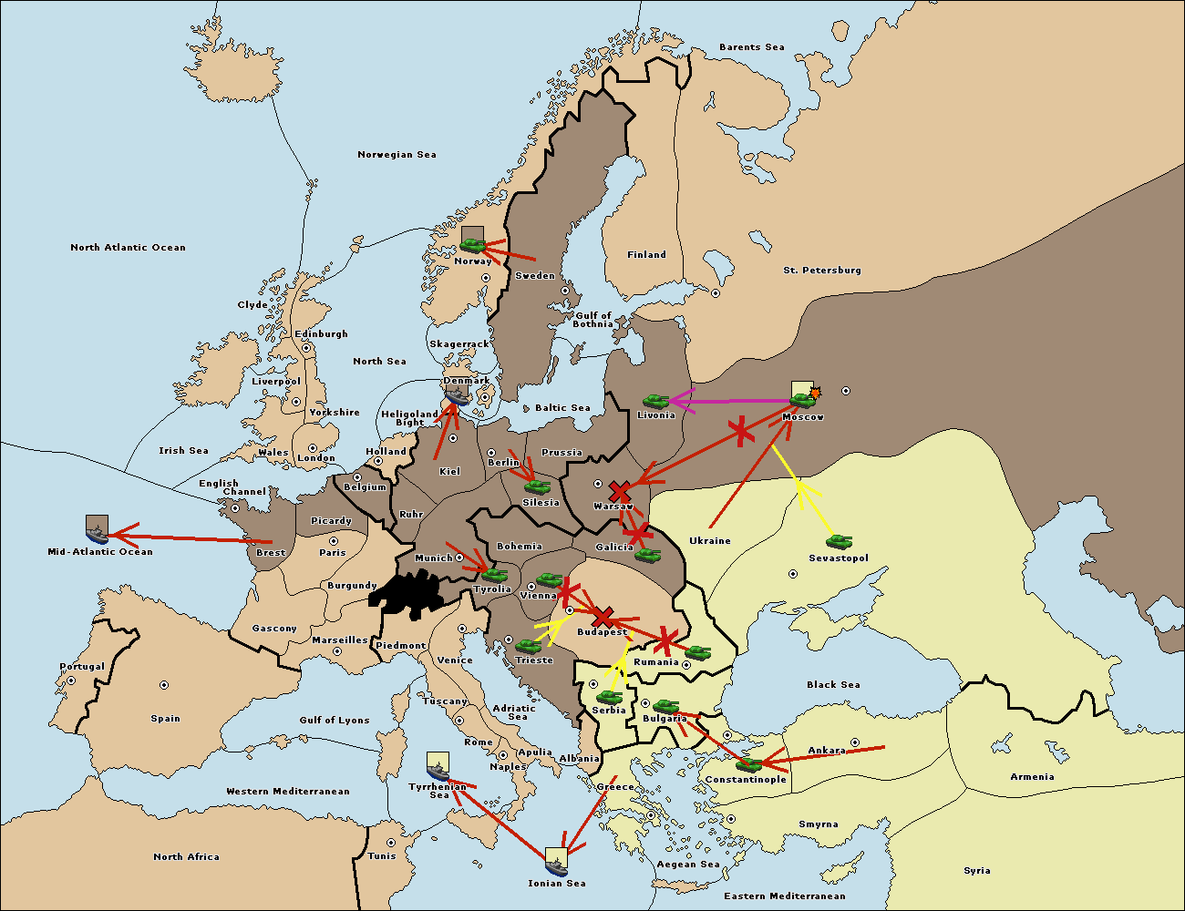 The fleet at Tyrrhenian Sea support move to Tunis from Ionian Sea.