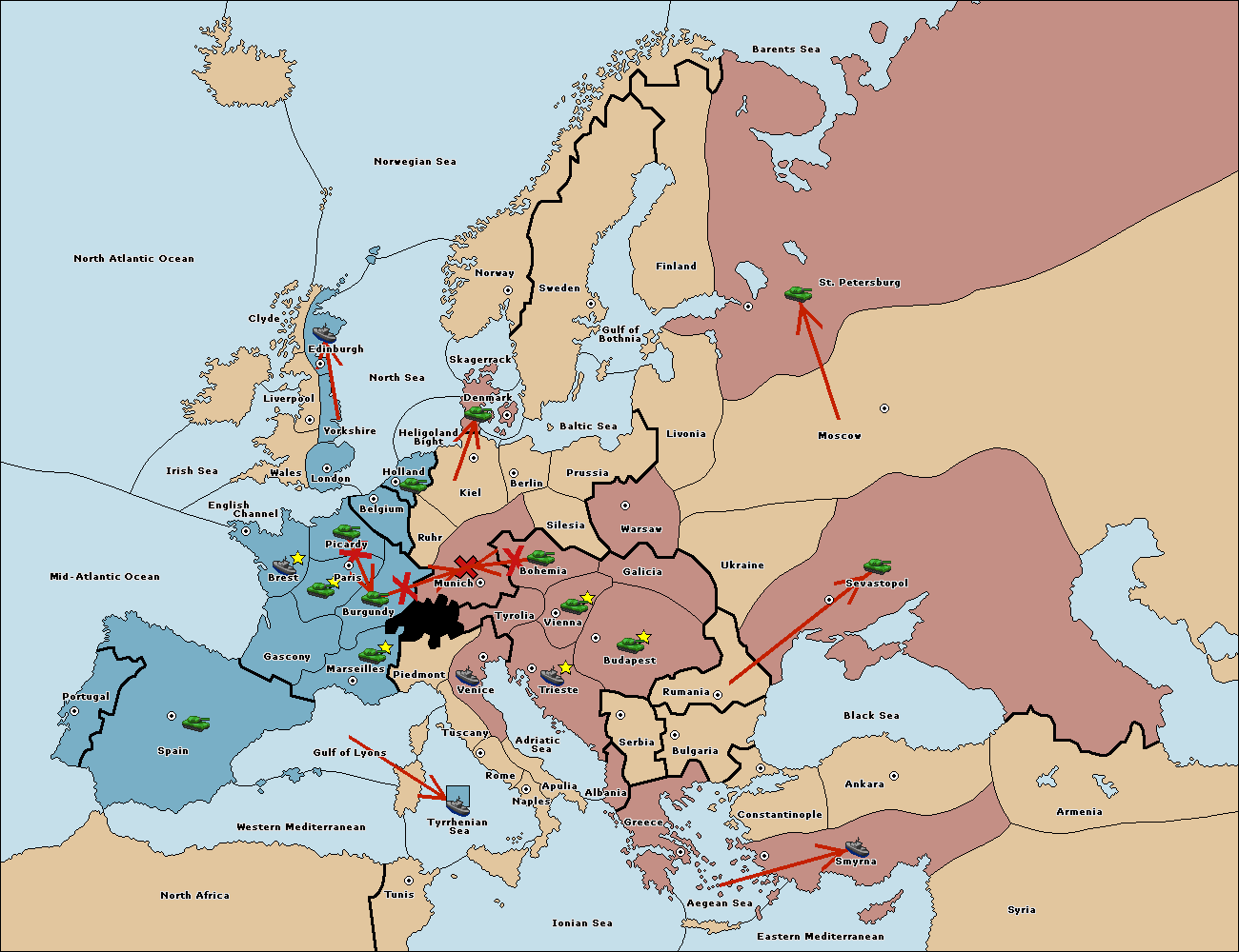 The army at Tyrolia move to Munich.