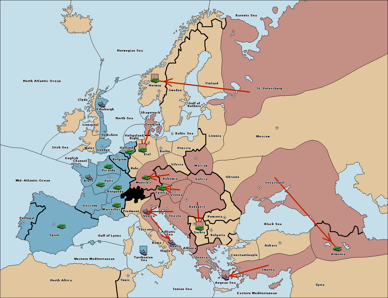 The fleet at Gulf of Lyons move to Tyrrhenian Sea.
