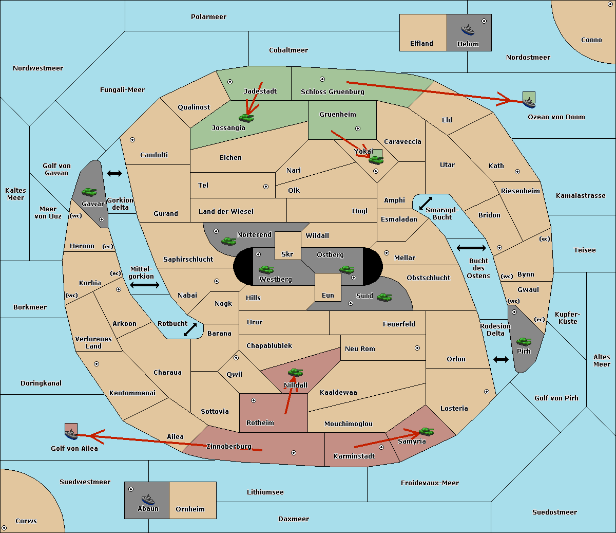 The fleet at Schloss Gruenburg move to Ozean von Doom.