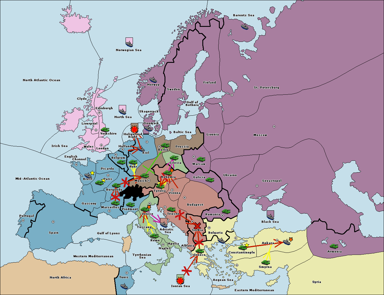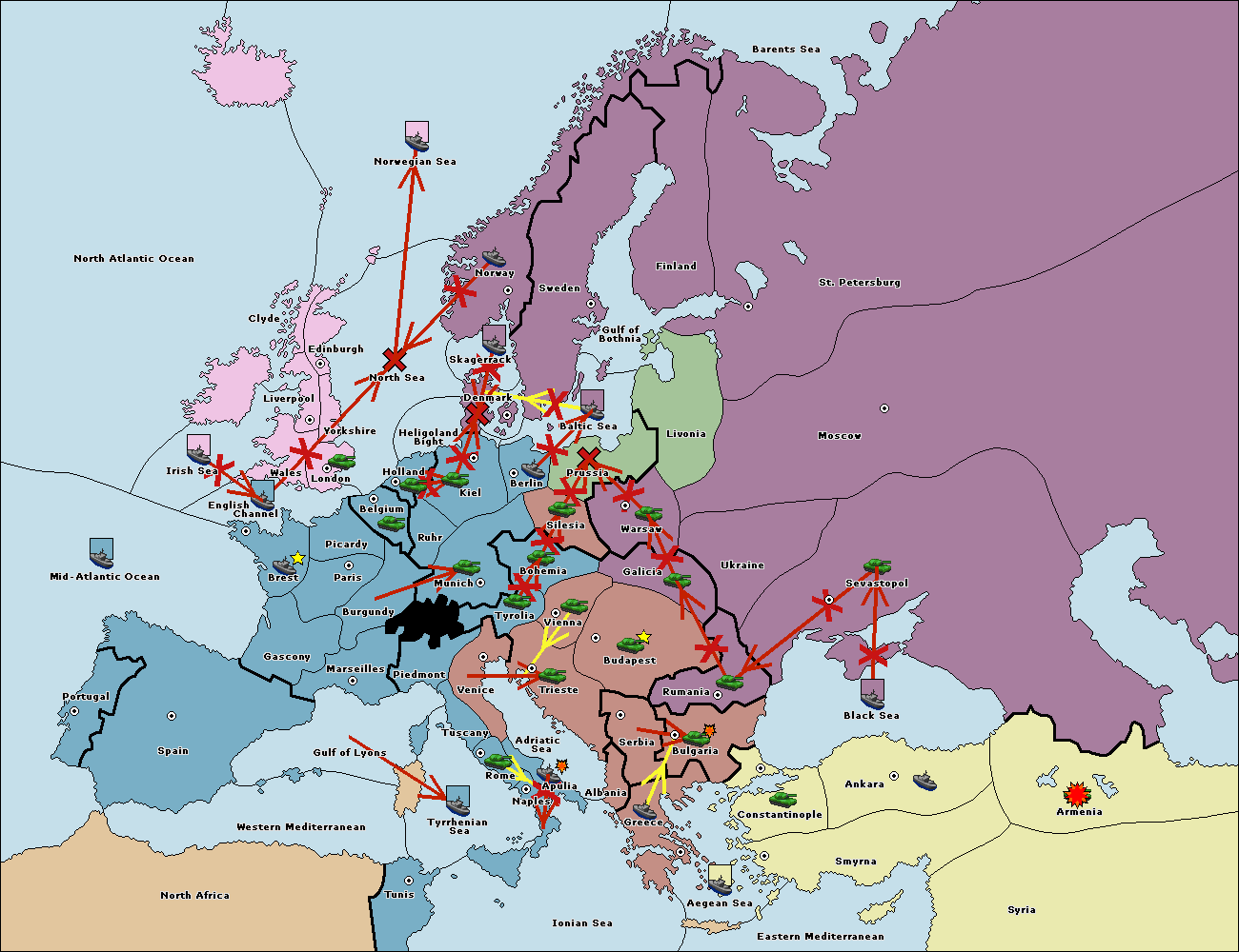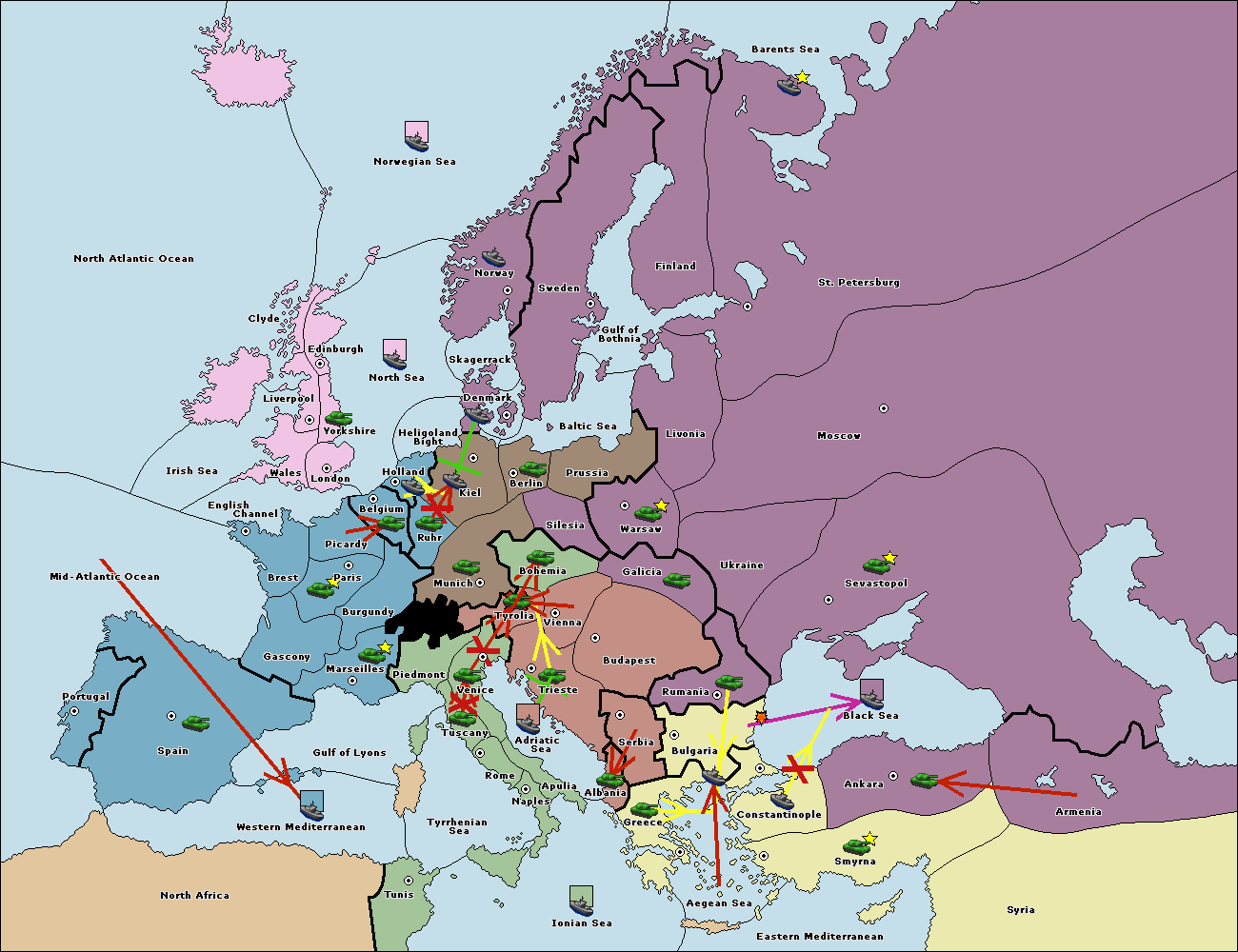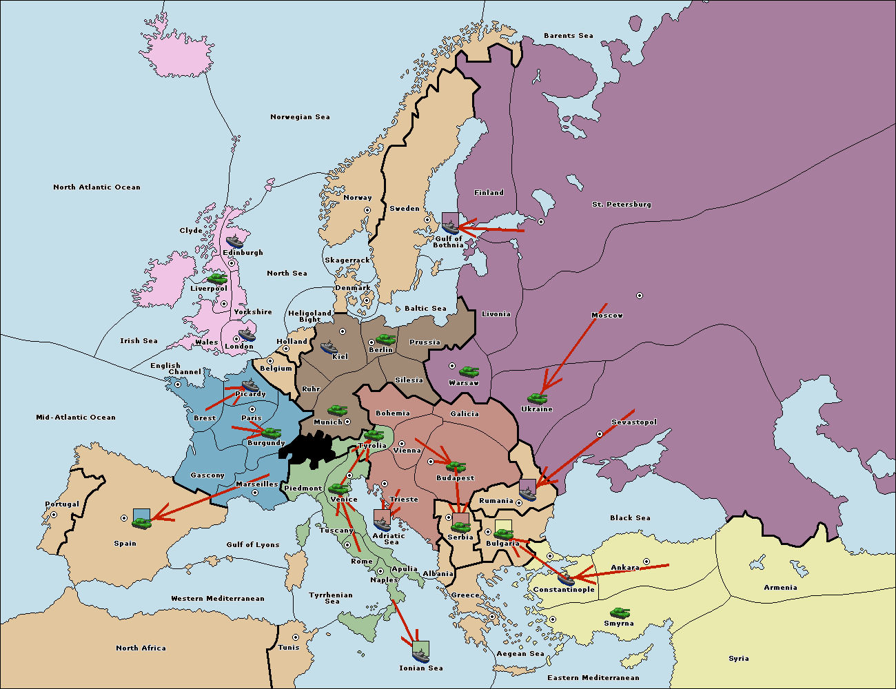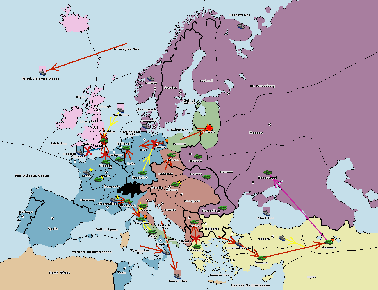 The fleet at Mid-Atlantic Ocean move to Western Mediterranean.