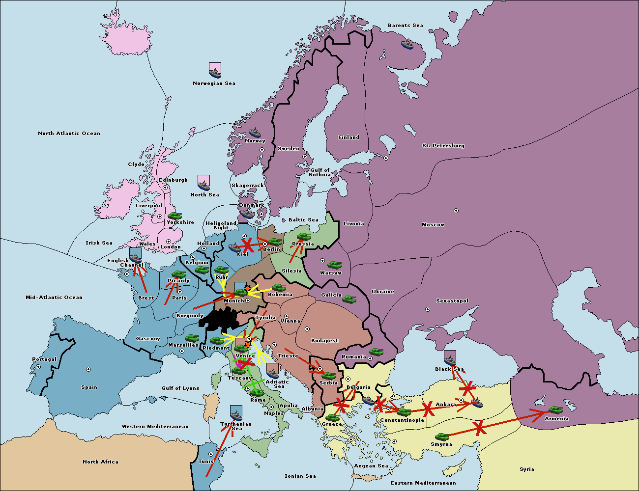 The army at Tyrolia support move to Venice from Adriatic Sea.