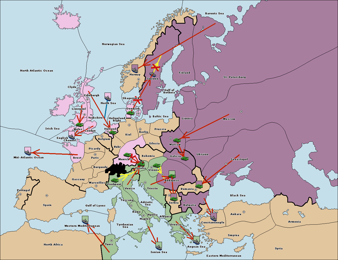 The fleet at Bulgaria (North Coast) move to Constantinople.