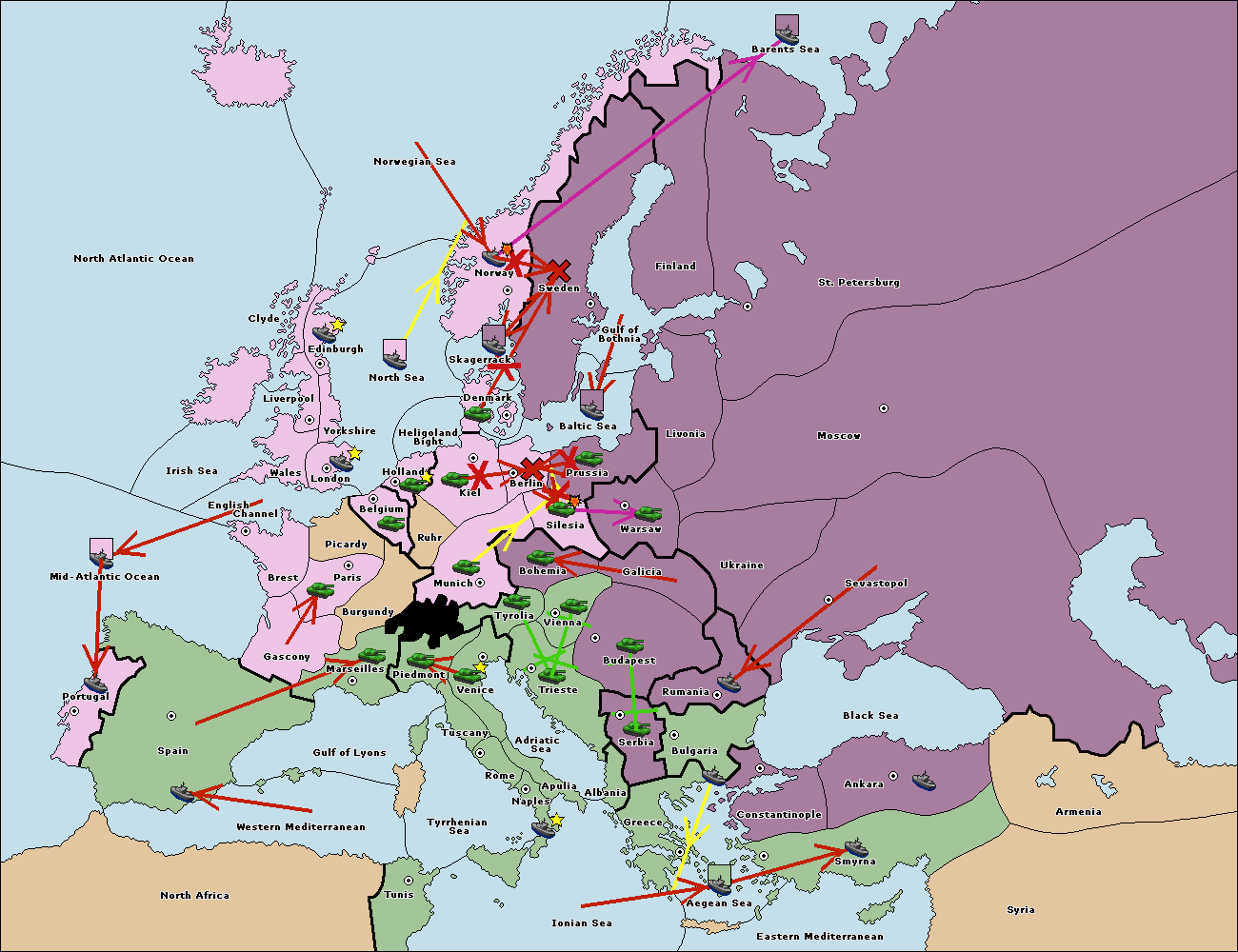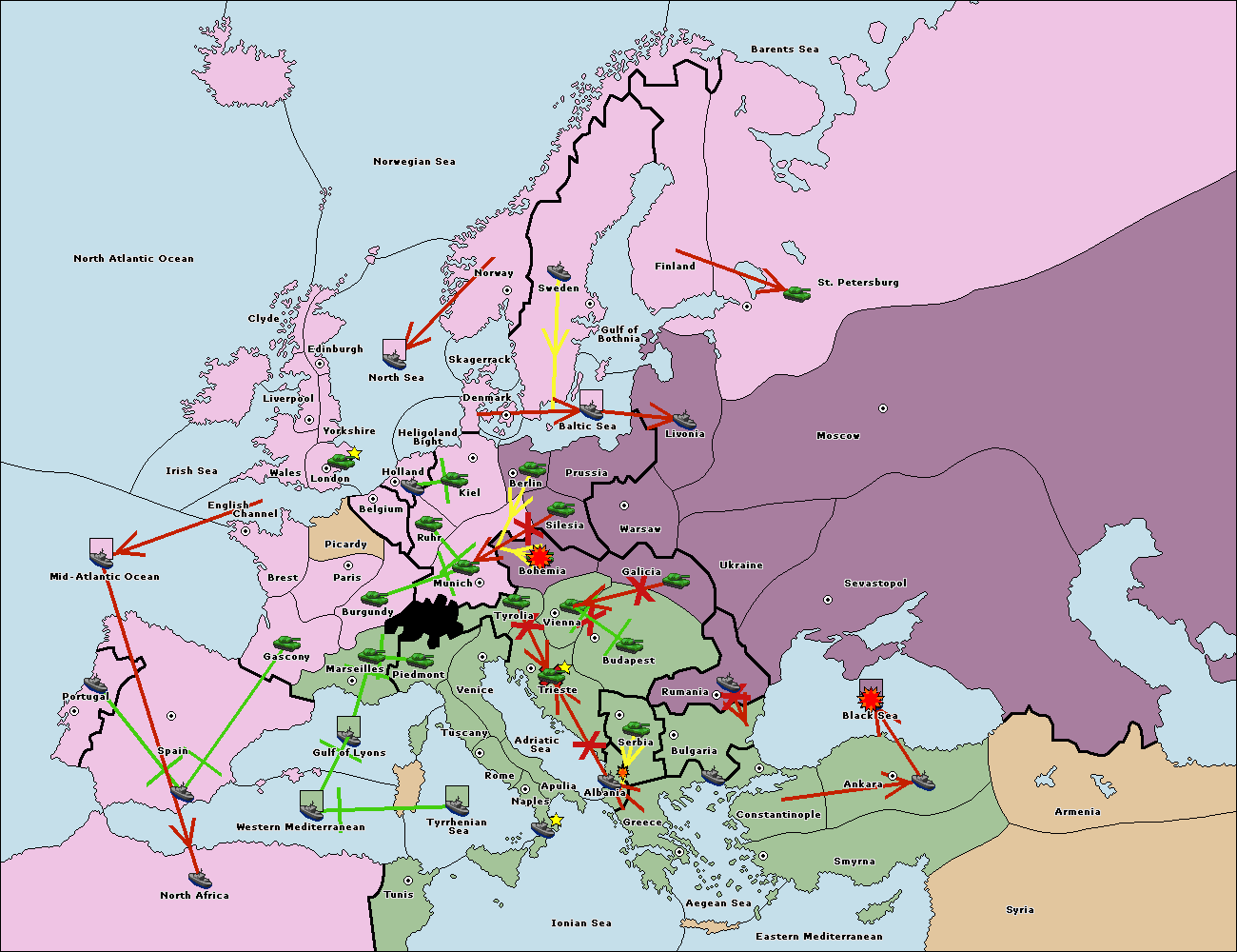 The fleet at Bulgaria (South Coast) support move to Aegean Sea from Ionian Sea.