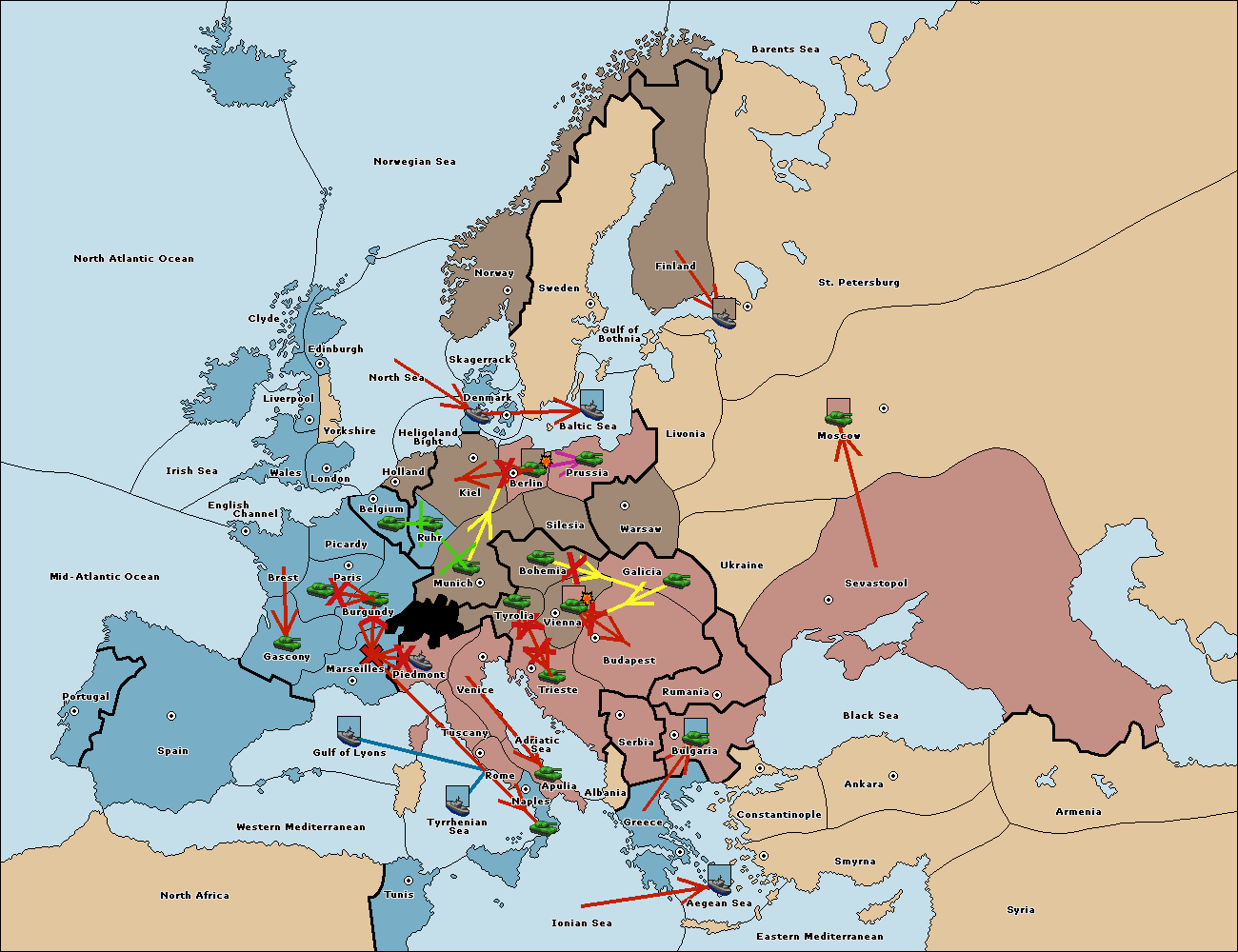 The fleet at Tuscany support move to Tyrrhenian Sea from Tunis.