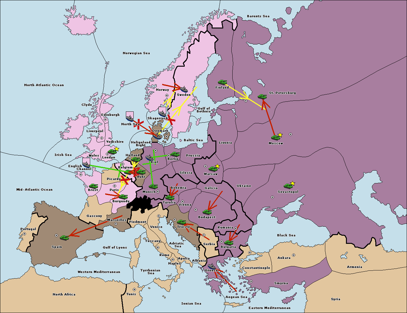The fleet at Bulgaria (North Coast) move to Constantinople.