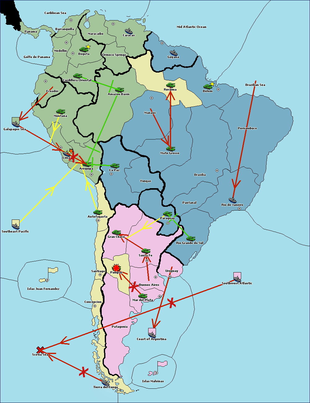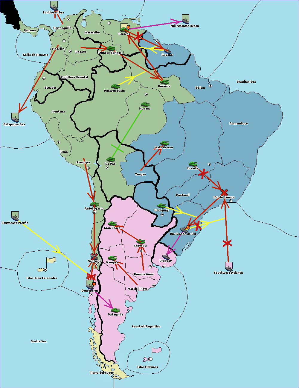 The army at Orinoco Springs move to Cordillera Oriental.