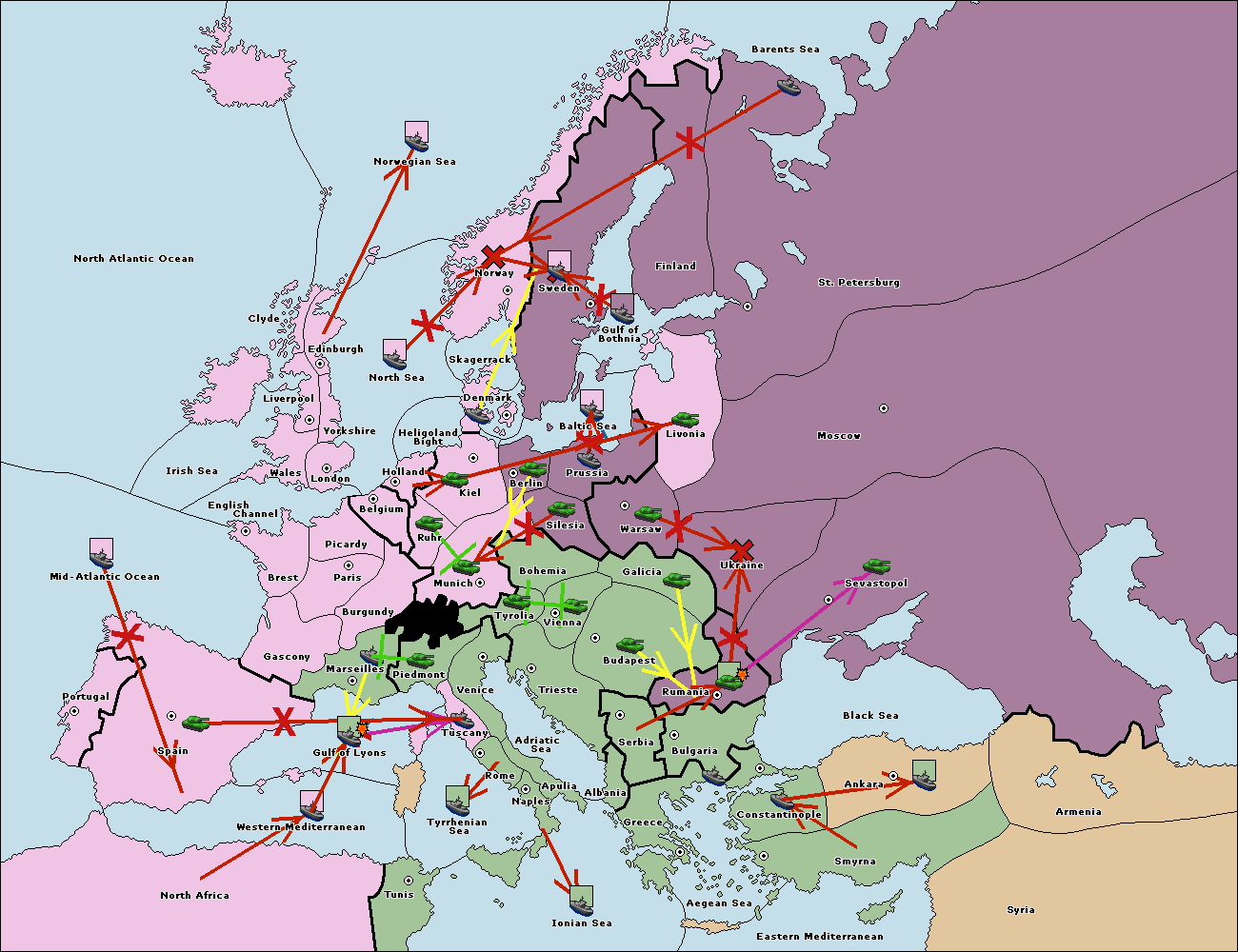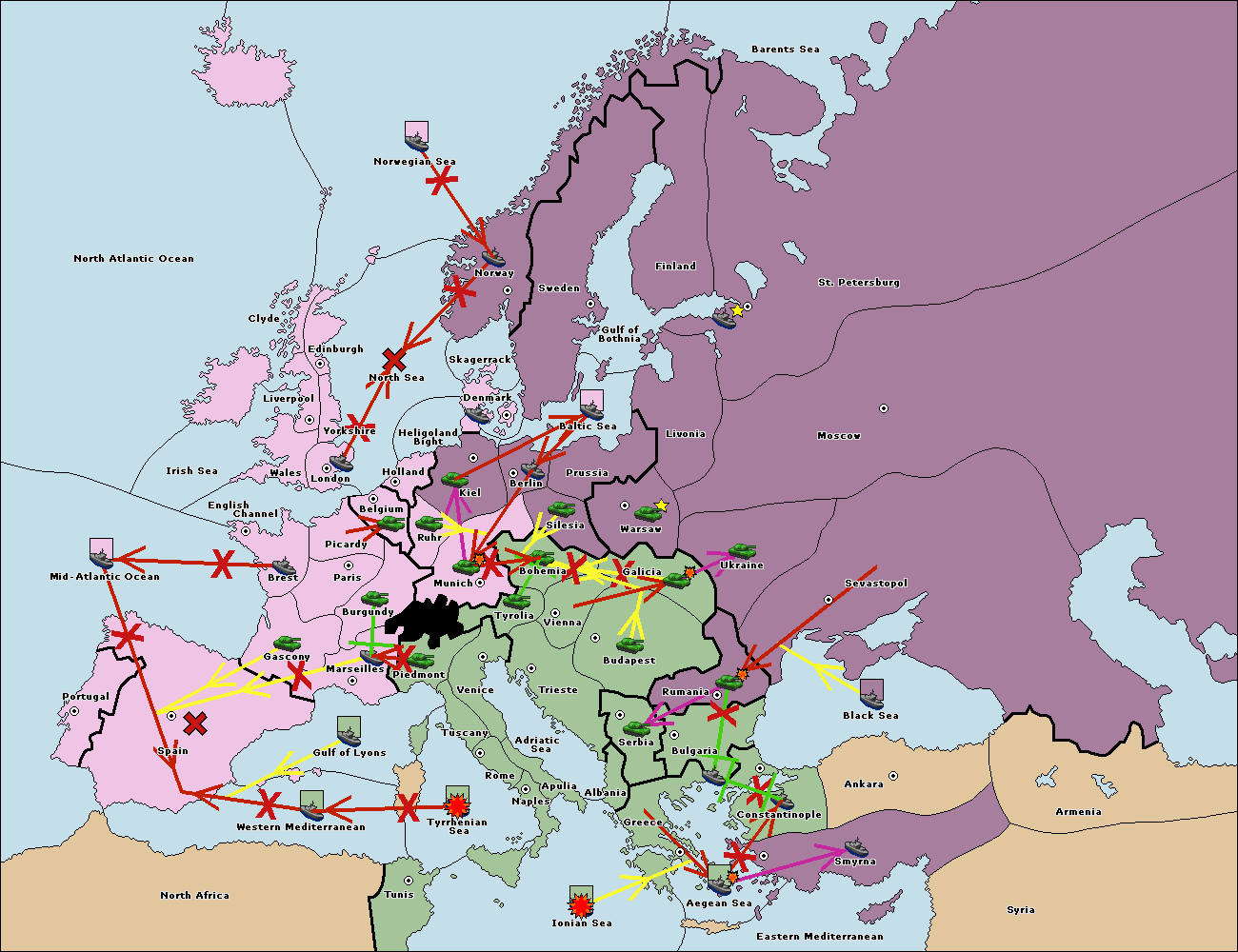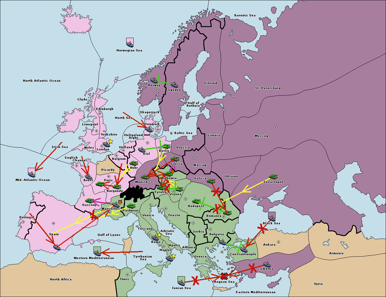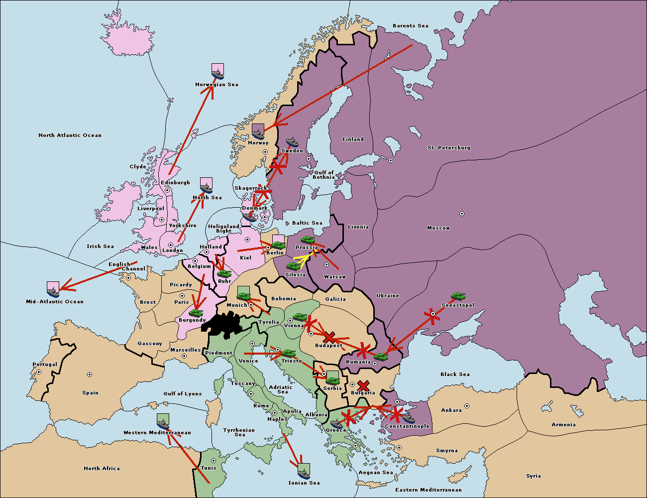 The fleet at Bulgaria (South Coast) move to Aegean Sea.