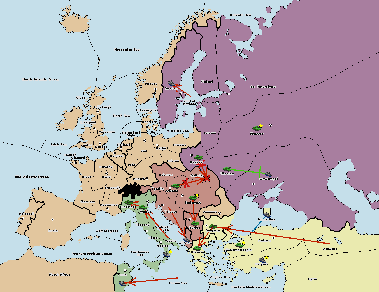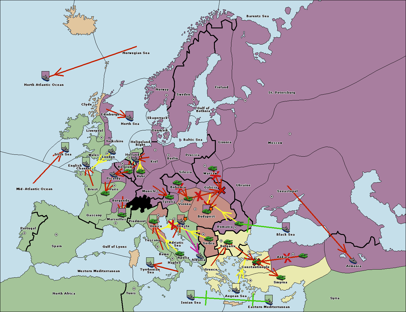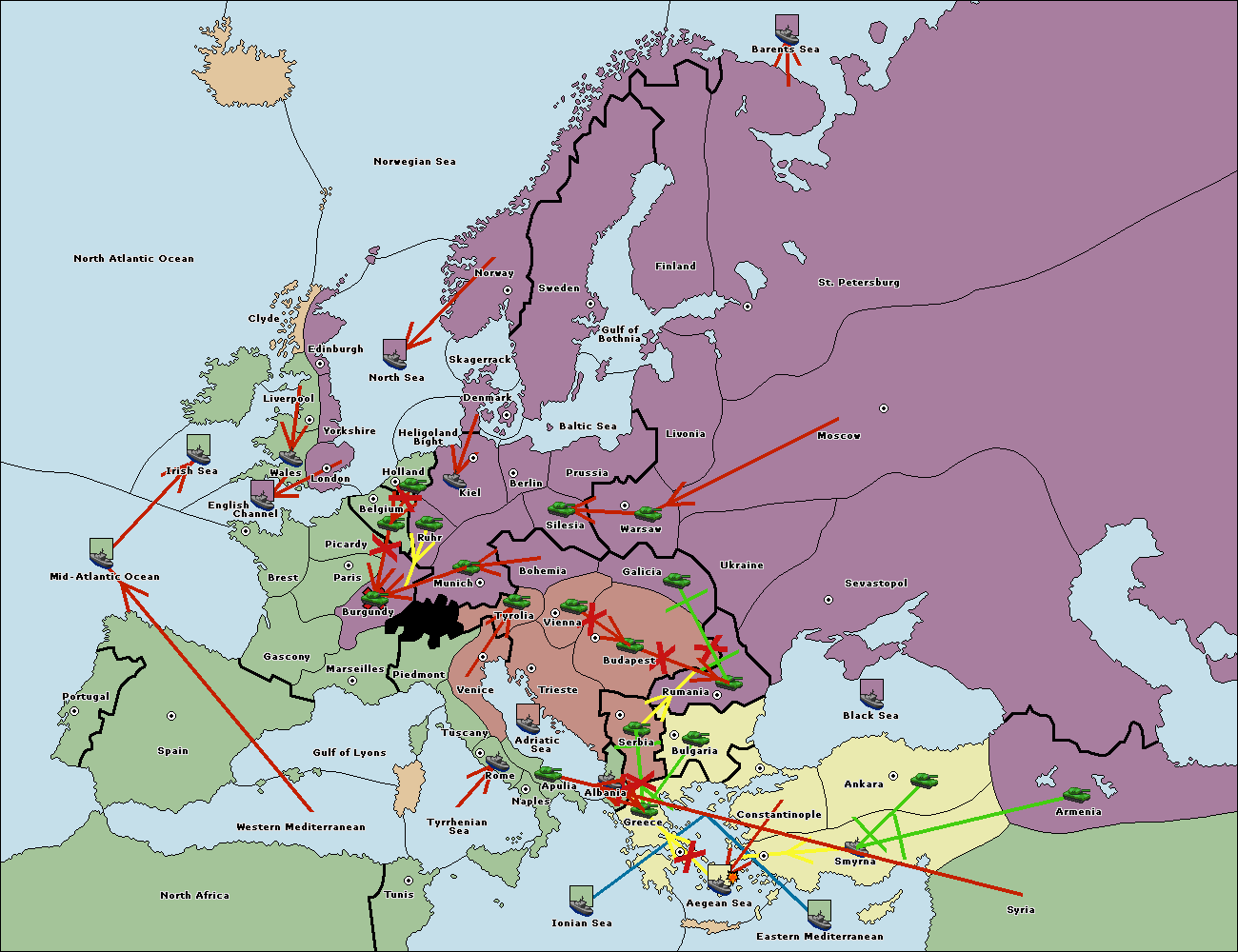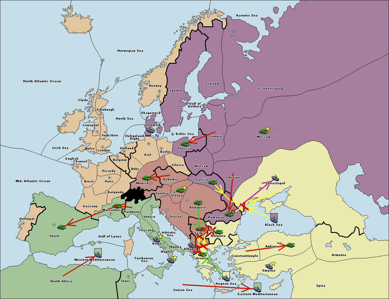 The fleet at Rumania support move to Sevastopol from Black Sea.
