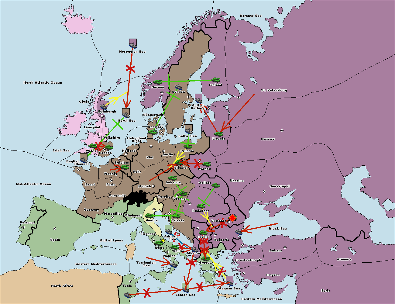 The fleet at Bulgaria (South Coast) move to Constantinople.