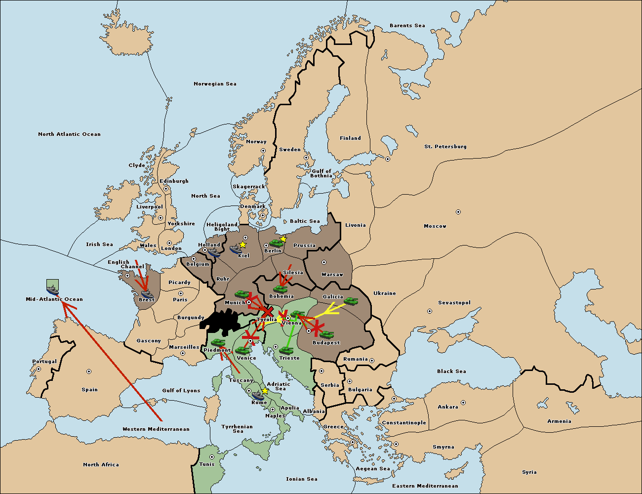 The fleet at Western Mediterranean move to Mid-Atlantic Ocean.