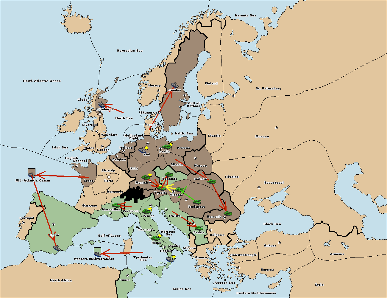 The fleet at Tyrrhenian Sea move to Western Mediterranean.