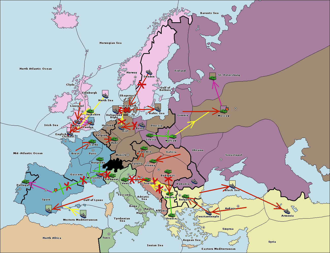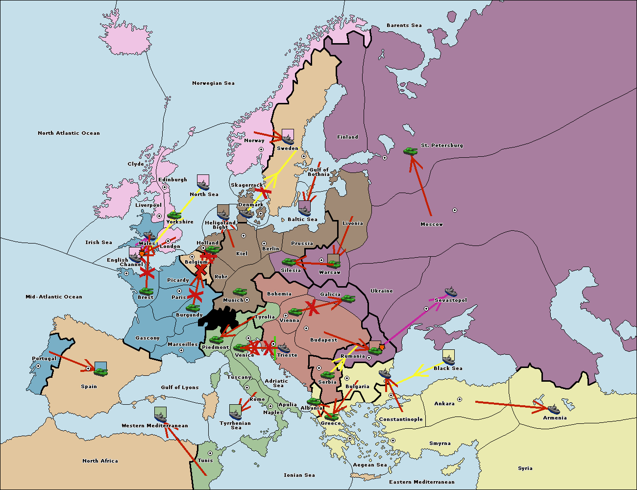 The fleet at Bulgaria (North Coast) support move to Rumania from Sevastopol.