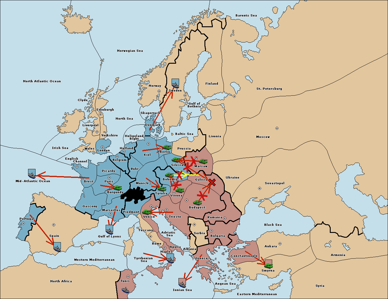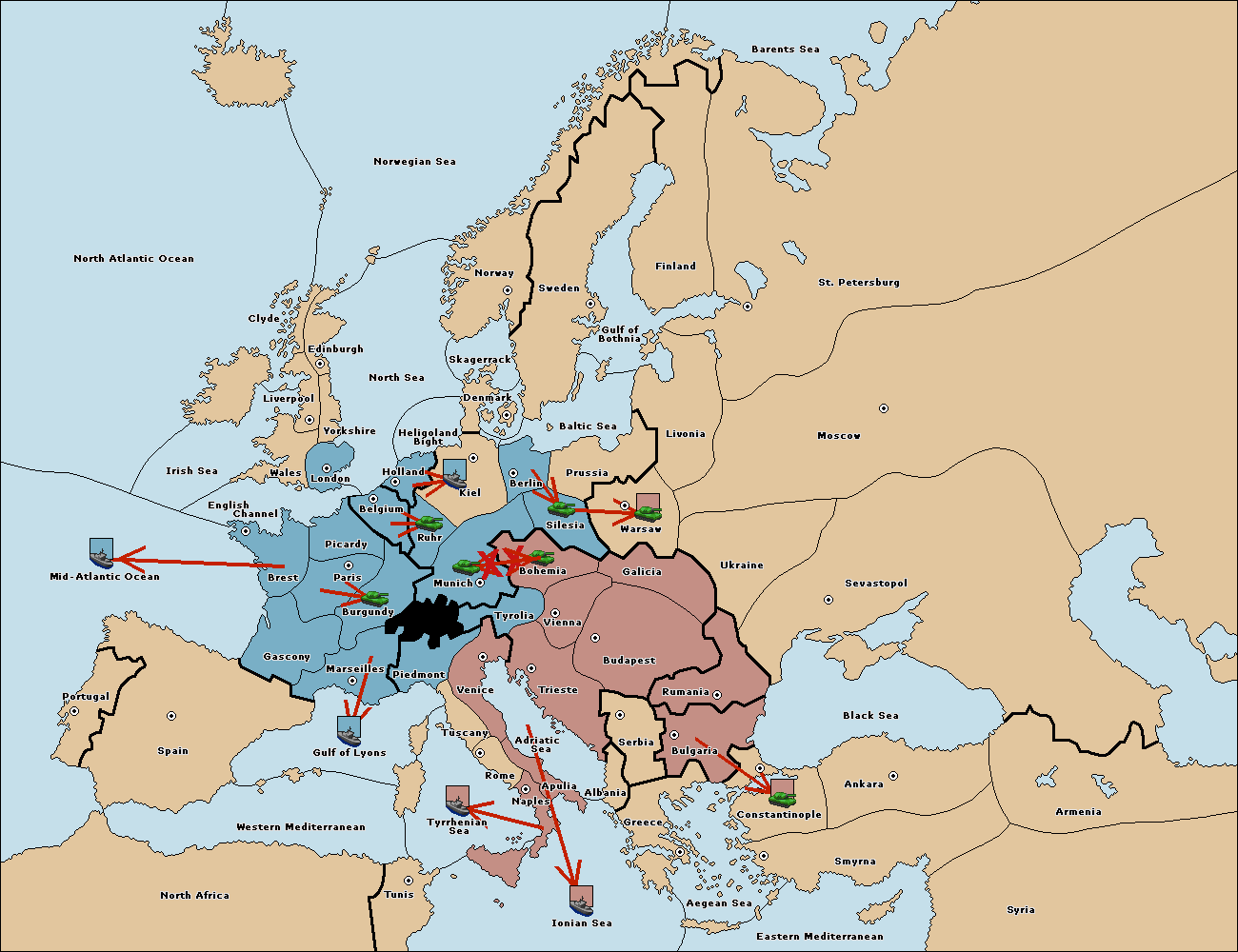 The fleet at Mid-Atlantic Ocean move to Western Mediterranean.