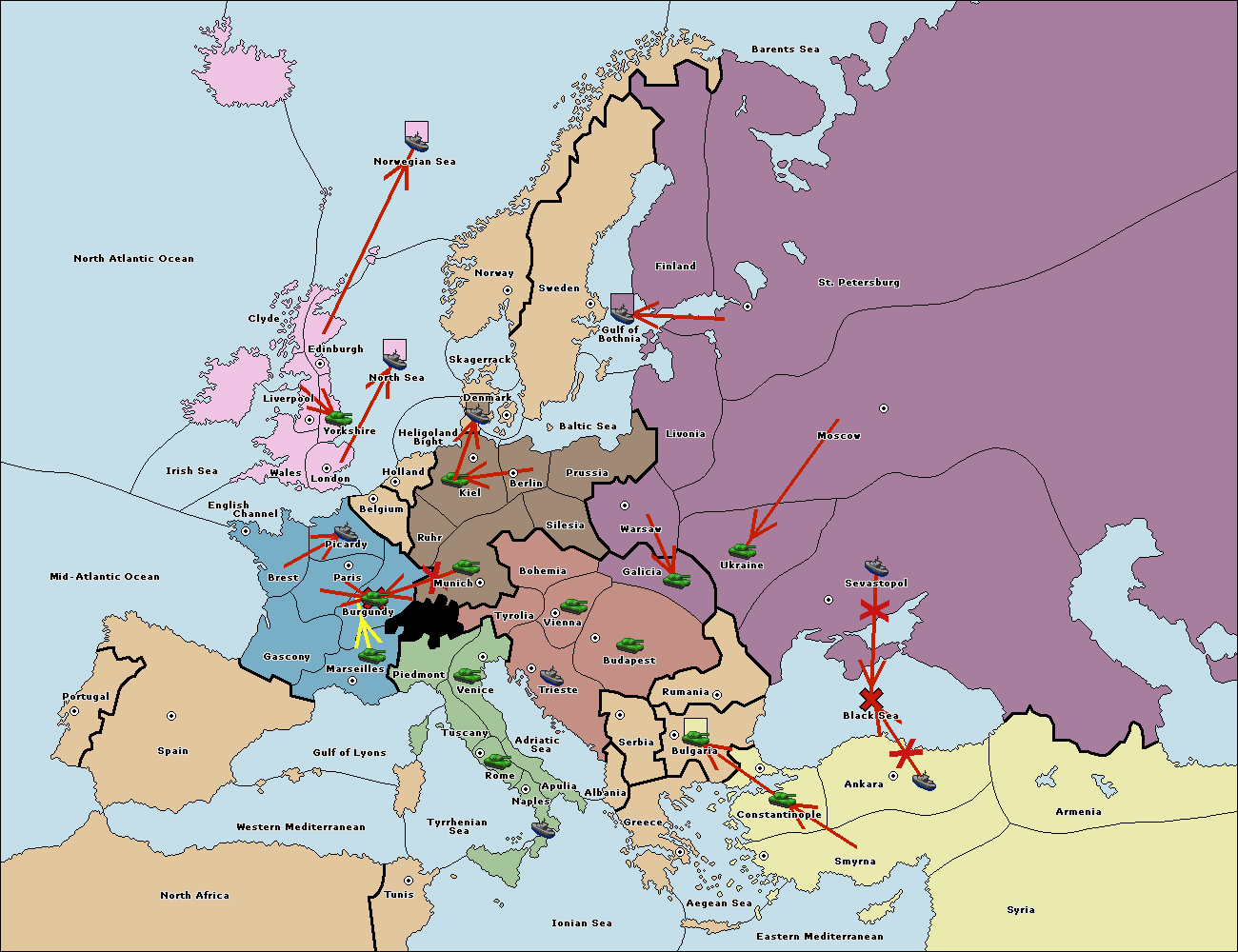 The fleet at Constantinople support move to Black Sea from Ankara.