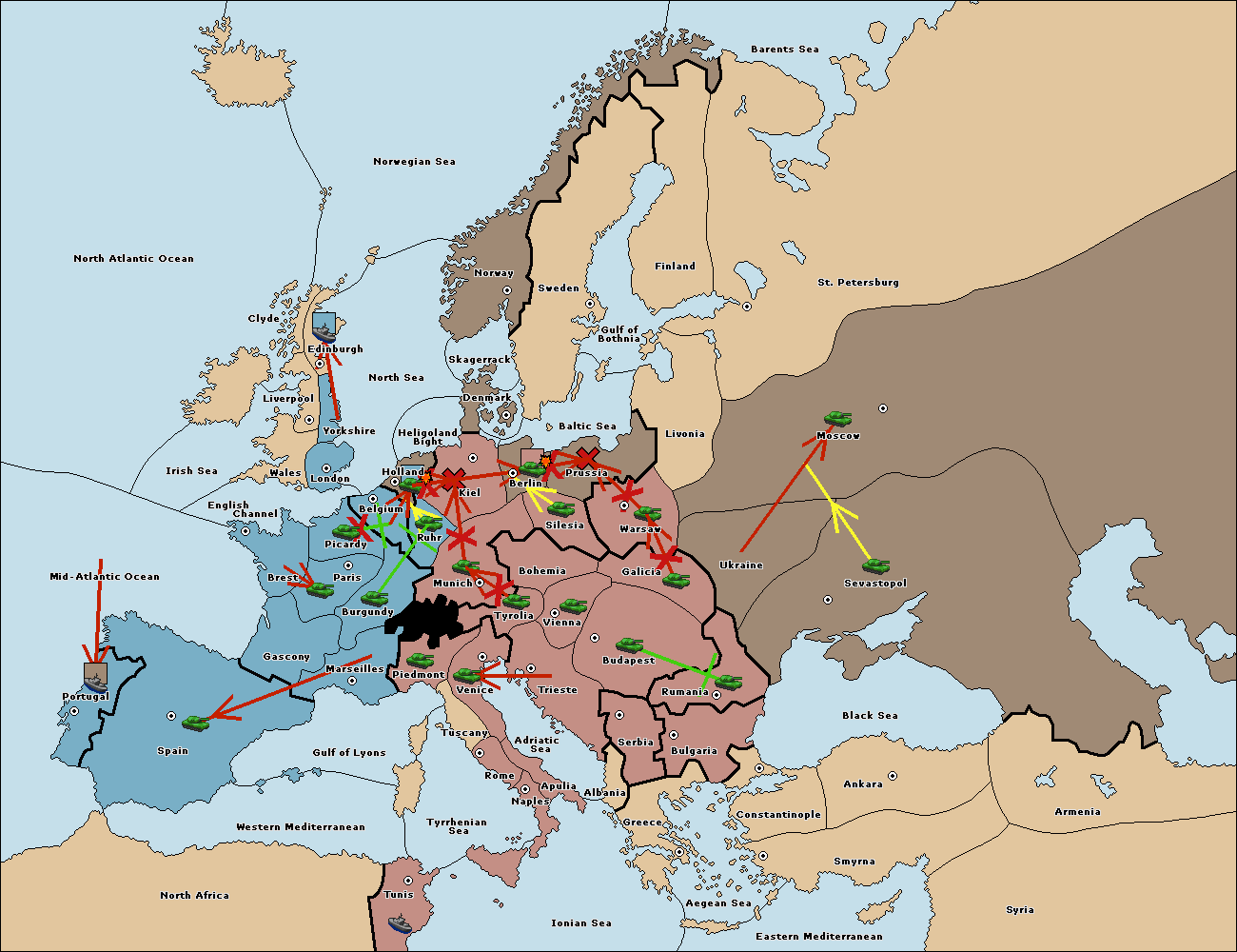 The fleet at Mid-Atlantic Ocean move to Western Mediterranean.