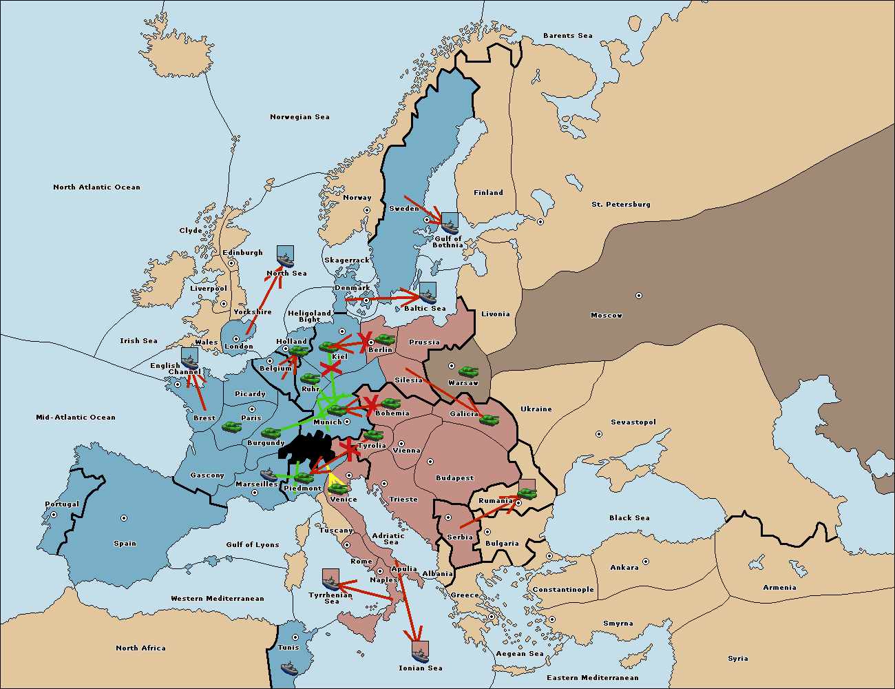 The fleet at Spain (South Coast) move to Western Mediterranean.
