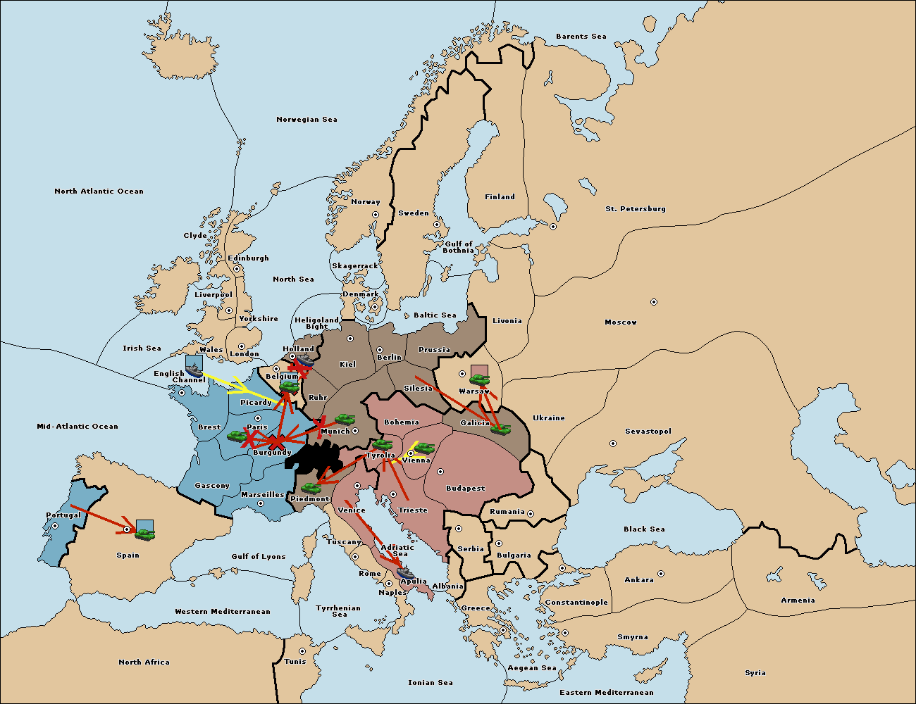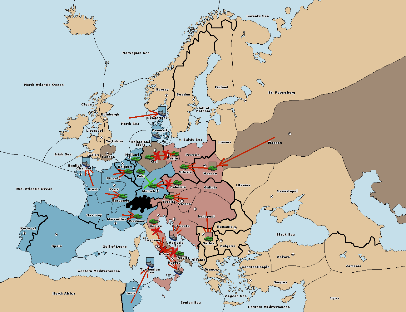 The army at Tyrolia move to Munich.