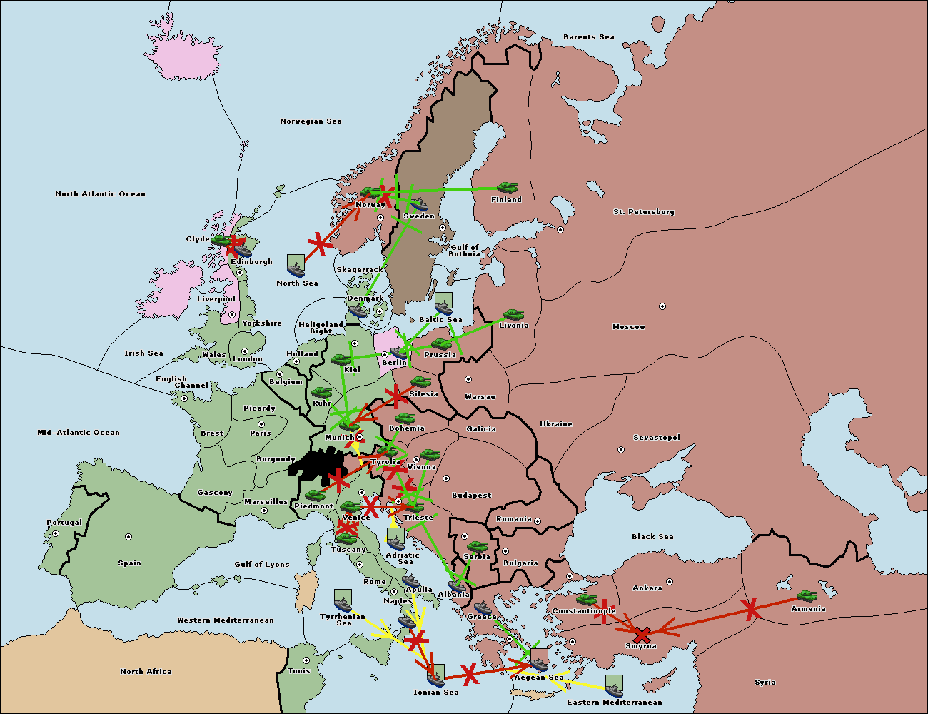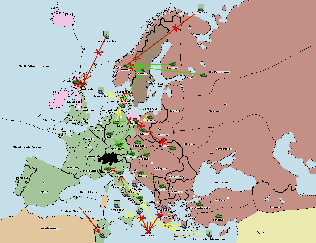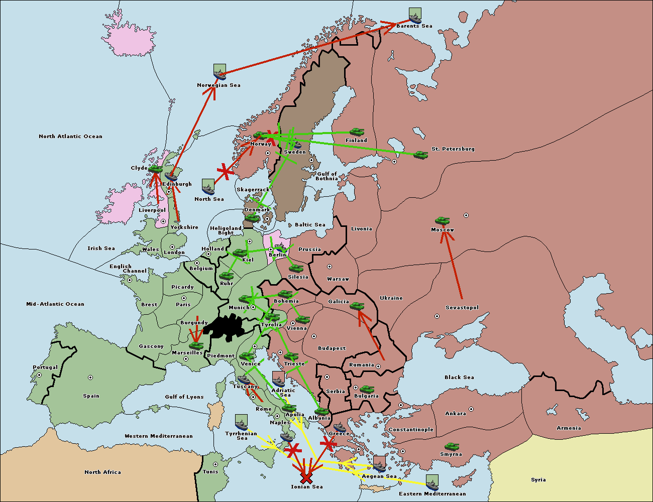 The fleet at Tunis support move to Ionian Sea from Naples.