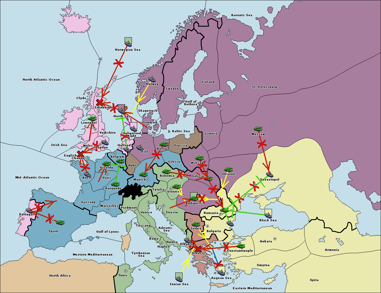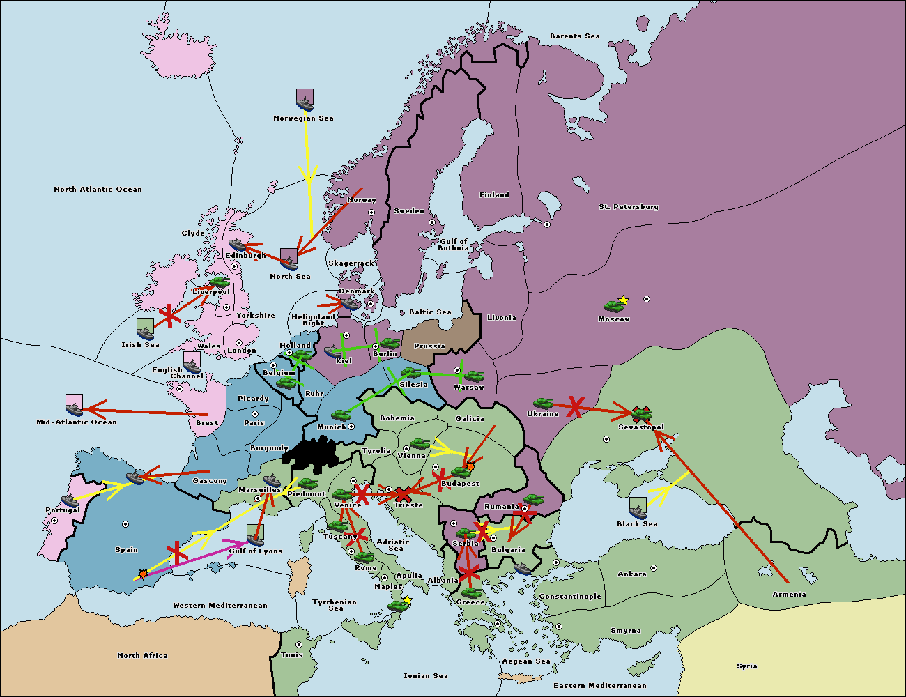 The fleet at Spain (South Coast) support move to Marseilles from Piedmont.